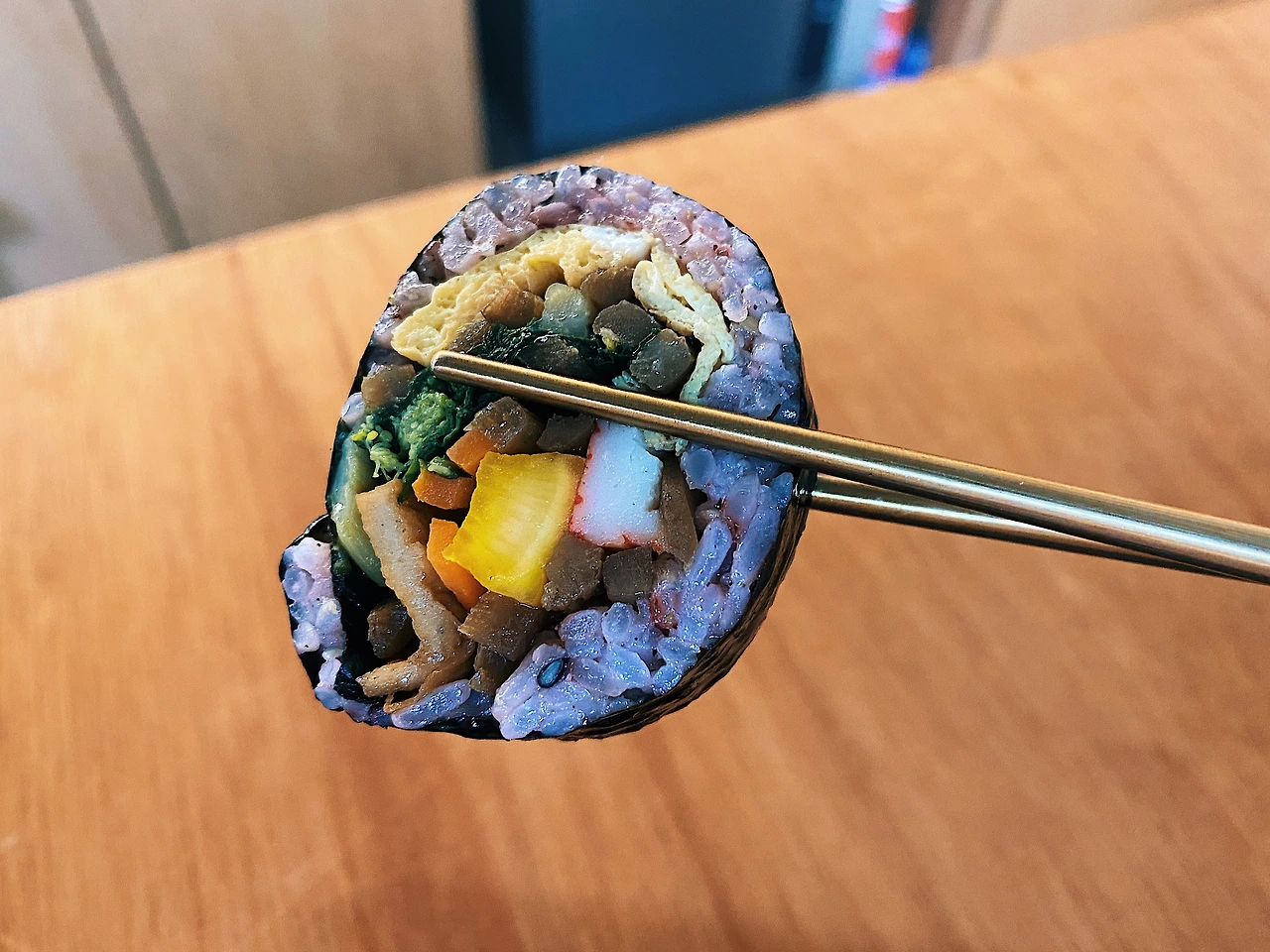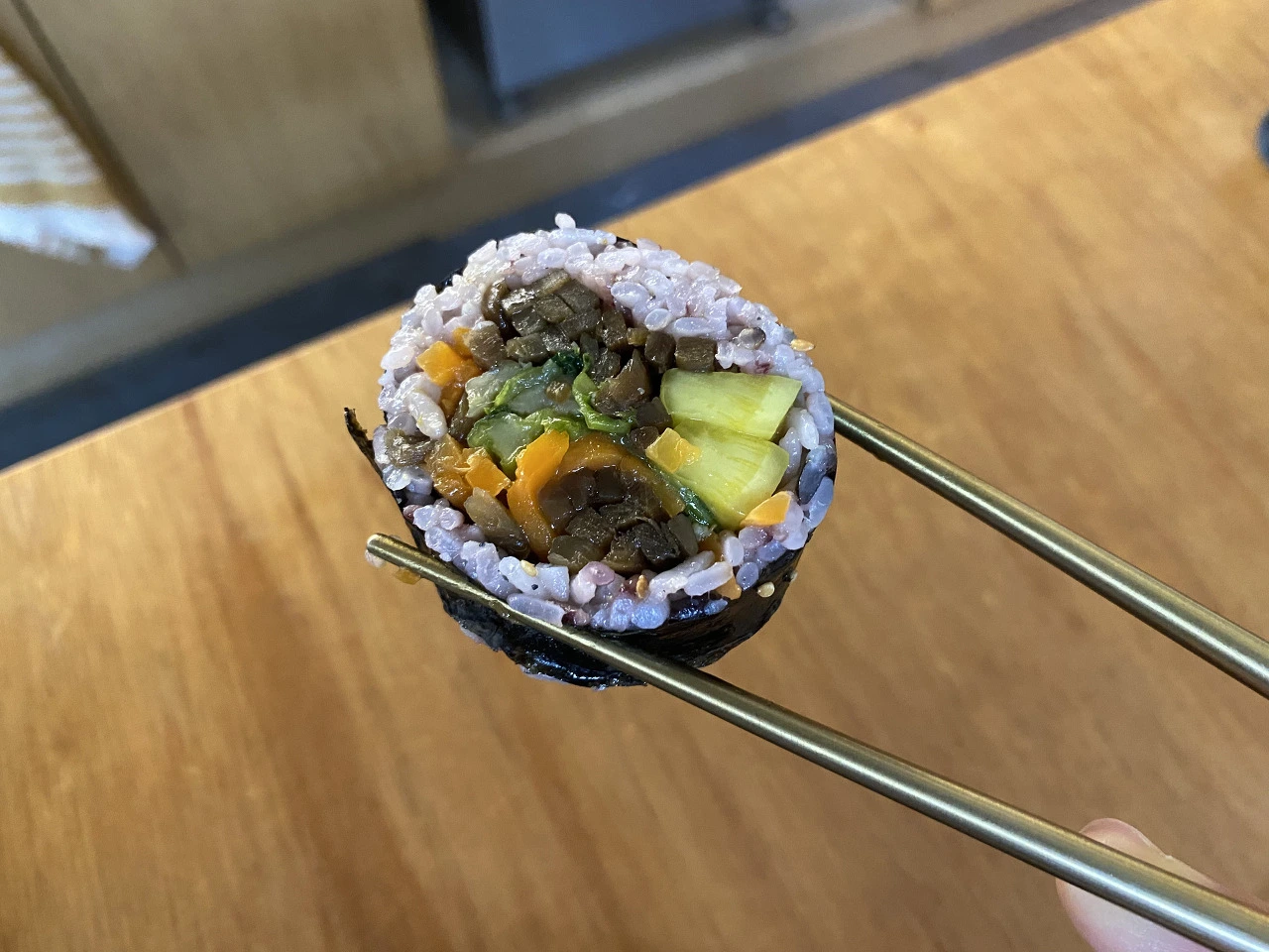 매장 근처, 집 근처만 봐도 바깥 음식 중에 육류와 생선이 들어가지 않은 음식을 찾기는 매우 매우 힘들다. 다행히 매장에서도 집에서 싸온 도시락을 먹기 때문에 육류가 포함되지 않은 음식에 대한 고민은 적지만 가끔 도시락을 싸기 귀찮을 때는 바깥 음식을 먹을 수밖에 없다. 이럴 때는 매장 근처에 있는 호랑이김밥에 가서 햄을 뺀 김밥을 주문한다. 김밥집 사장님에게 여쭤보니 정말 야채만 넣은 김밥을 주문하는 손님들이 꽤 많다는 말을 듣고 나도 다음번엔 완전한 비건 김밥을 주문해야겠다고 생각했다.
