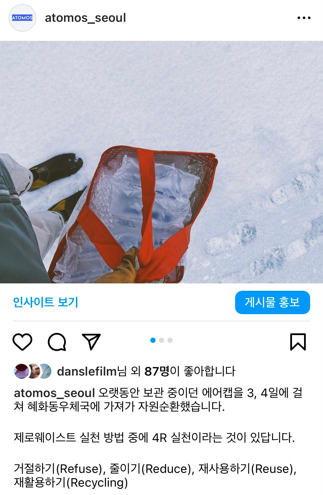 에어캡을 처음 모으기 시작했을 때는 자원순환에 대해 고민이 깊지 않았다. 정말로 그저 너무나 깨끗해서 버릴 수 없었을 뿐. 아토모스를 운영하면서 과거에 비해 자원순환에 관심을 가지면서 모아둔 에어캡을 처리하기로 했다. 그리하여 2019년부터 모았던 에어캡은 2022년 1월에야 박스에서 해방되었다.