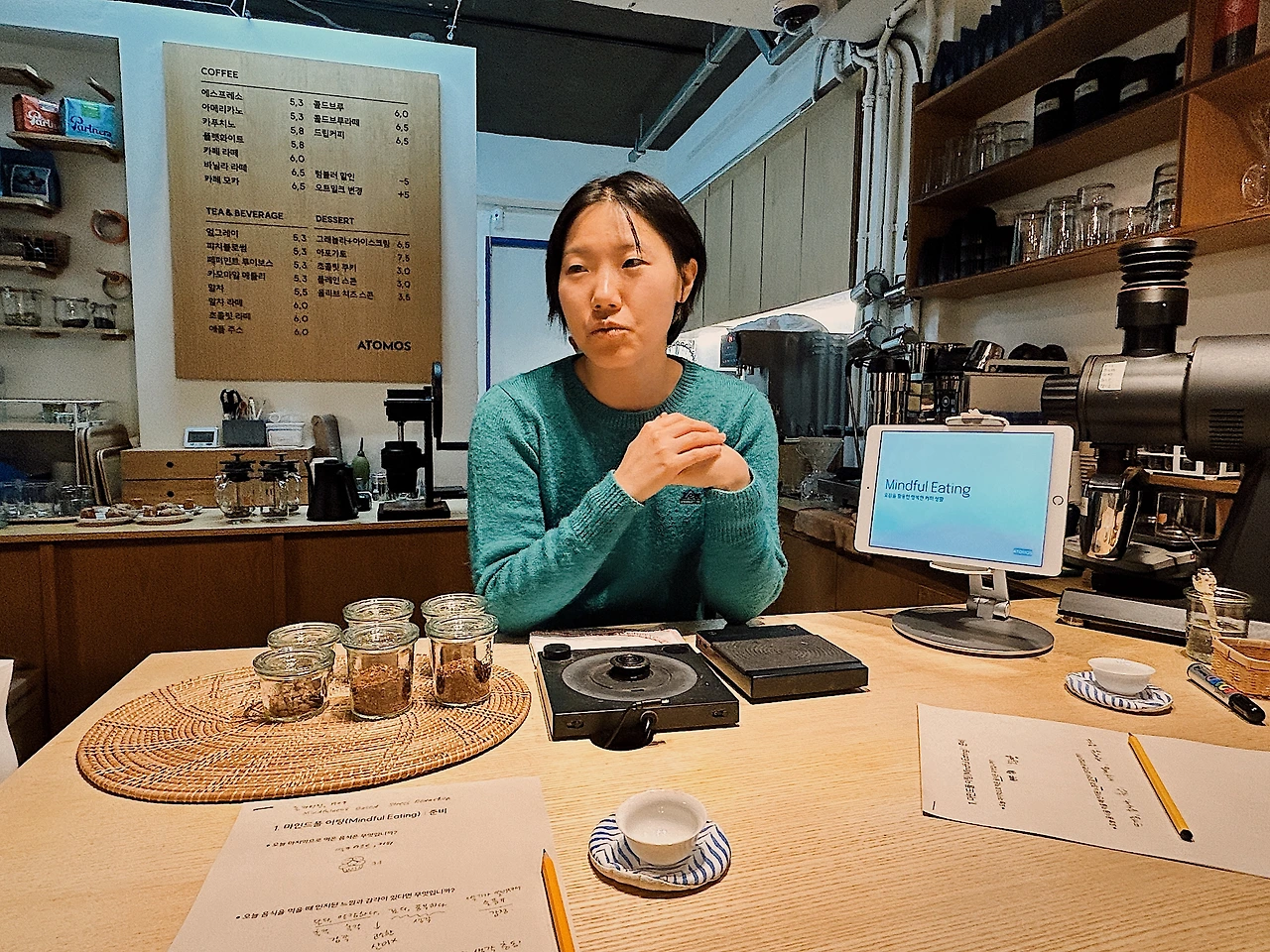 아토모스를 운영하며 커피를 맛보고 내가 느낀 감각을 활용해 원두를 소개하는 과정도 마인드풀 이팅과 다르지 않다. 커핑(Cupping : 원두 향미를 테스트하는 과정)이 마인드풀 이팅과 유사하기도 했고, 고객들이 마인드풀 이팅을 하며 커피를 마신다면 매일 마시는 커피에서 매일 다른 경험을 할 수 있지 않을까? 아토모스를 방문하는 사람들에게 마인드풀 이팅의 경험을 제공한다면 조금 다른 카페문화로 이어지지 않을까.