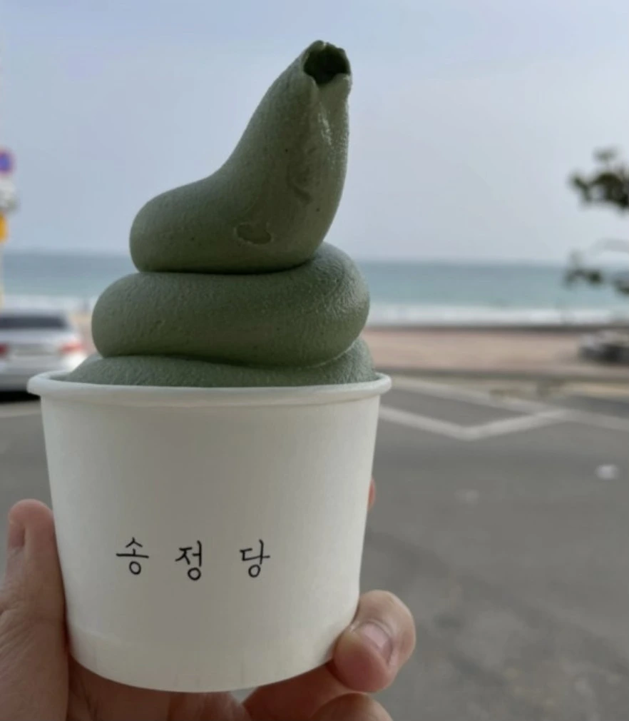 눈이 부시고 사람이 많아 바닷가에 오래 앉아있기는 어렵다. 바다라는 장소가 밀고 당기는 거친 느낌이 있어 오래 앉아있으면 힘이 소모되기도 한다. 소금기가 느껴질 때쯤 자리에서 일어나 '송정당의 쑥 아이스크림'을 먹으러 간다. 여수당의 송정 버전인데, 다른 곳에서는 맛보기 어려운 진한 쑥 아이스크림이다. 쓰고 달다.