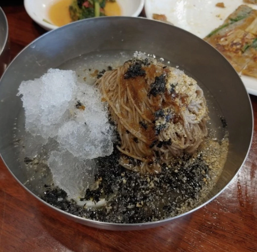 춘천에서 삼삼한 맛을 알게 되었는데 대표적인 음식이 바로 막국수이다. 면을 방금 막 뽑아서 막국수, 막 비벼먹어서 막국수. 처음엔 진짜 맛이 없었다. 뭐야 이걸 왜 먹지 에라잇 입 배렸네. 근데 어느 순간부터 그 삼삼하고 뚝뚝 끊어지는 면발. 고소한 메밀 맛이 머릿속으로 이해가 됐다. 이 동치미 막국수를 먹으면 동치미의 자연적으로 생긴 시원함이 느껴진다. 바닷가에서 먹는 막국수. 정말 찰떡이다.