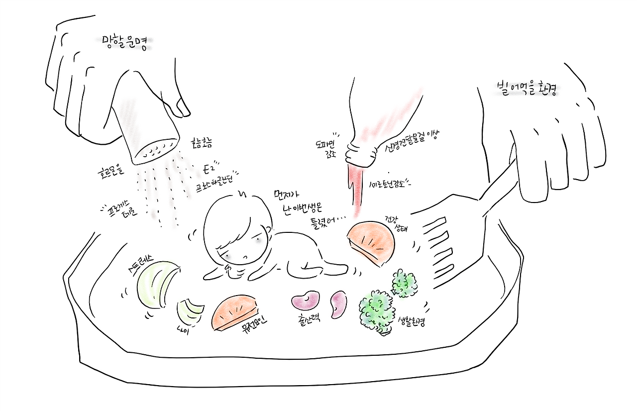 지금부터 얘기할 '월경전증후군'이라는 질환은 후자에 해당합니다. 처음으로 돌아가 동화에 빗대어 말하자면 '쓸데없이 예민한 공주'와도 같은 병이에요. 가임기여성은 대략 한 달에 한번 배란이 되고 월경이 찾아오는데 출혈이 있기 전에 몸의 변화를 알아채는 사람들이 있습니다. 월경 전 3일에서 11일사이, 즉 배란 이후 월경 시작 이전에 여러 가지 증상이 나타나는 거죠. 보통 스트레스가 심하면 증상도 심해집니다. 스트레스와 어깨동무하고 살아가는 요즘 여성들에게는 무시할 수 없는 질환인 동시에 다른 여성 질환에 비해 중요도가저평가되어 있는 질환이죠.
