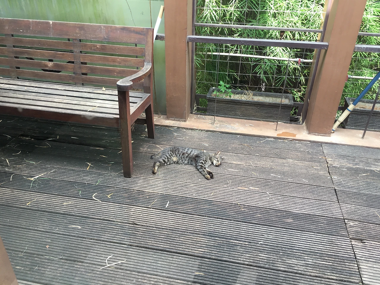 그런데 이 녀석이 보였다. 길고양이인데 우리 집 테라스에서 천연덕스럽게 잠을 자고 있었다. 어찌나 달게 자는지 왠지 내가 조용히 해줘야 할 것 같은 기분을 느끼게 하는 숙면이었다. 녀석과는 금방 친해졌다. 종종 먹을 것을 주니 나를 잘 따랐다. 다가와서 몸을 비비는데, 몸통에 털이 비어 있는 곳이 보이고, 귀 끝에도 상처가 아문 흔적이 있었다. 그래서 그런지 더 챙겨주고 싶었다. 일 마치고 들어올 때면 자동차 후방 카메라로 이 녀석이 나를 반기면서 날뛰는 모습이 보였다. 그 모습이 그렇게 좋을 수 없었다.
