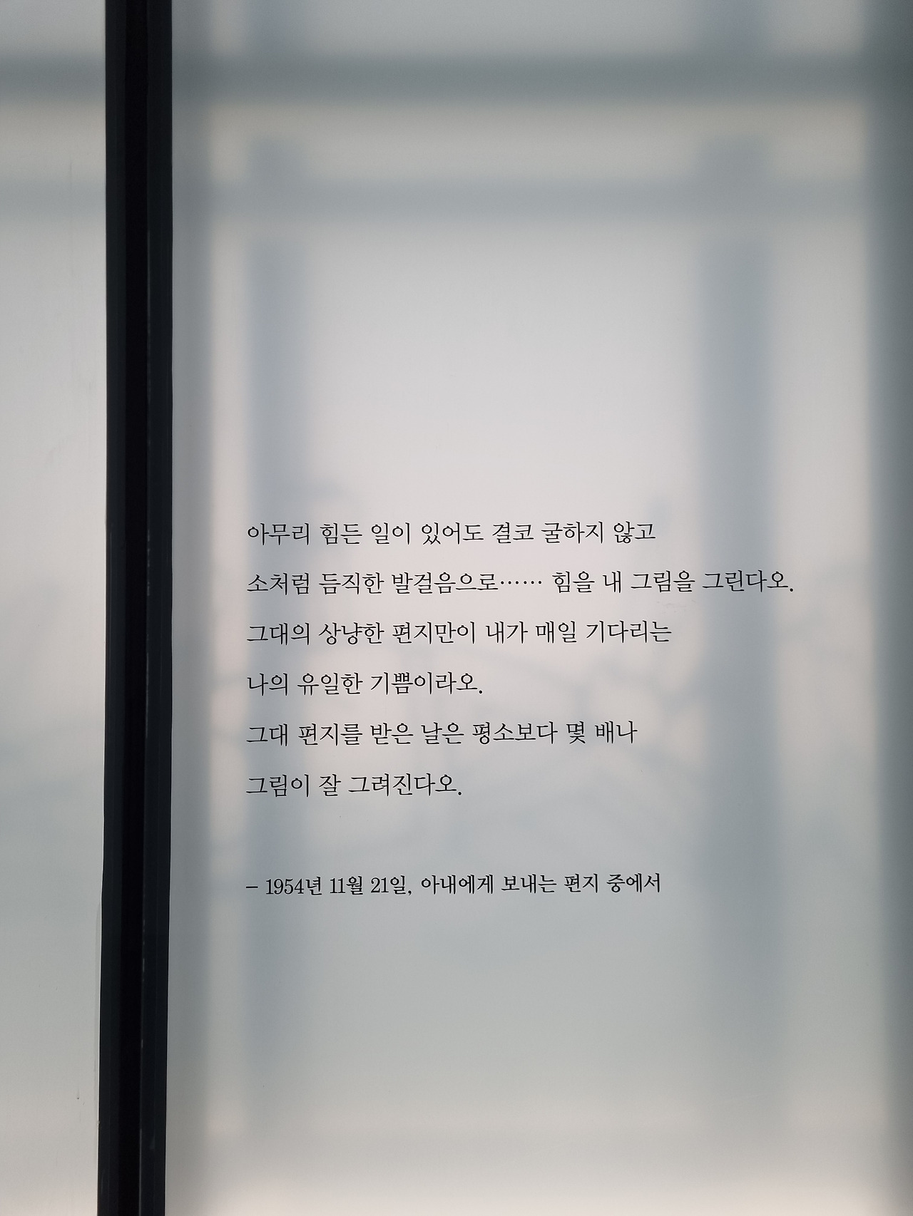 전시회장 입구에는 이중섭이 아내에게 남긴 편지에서 발췌한 문구들이 곳곳에 적혀 있었다. 그냥 지나치기 힘든 다정함과 달달함이 묻어있는 문장들이었다.