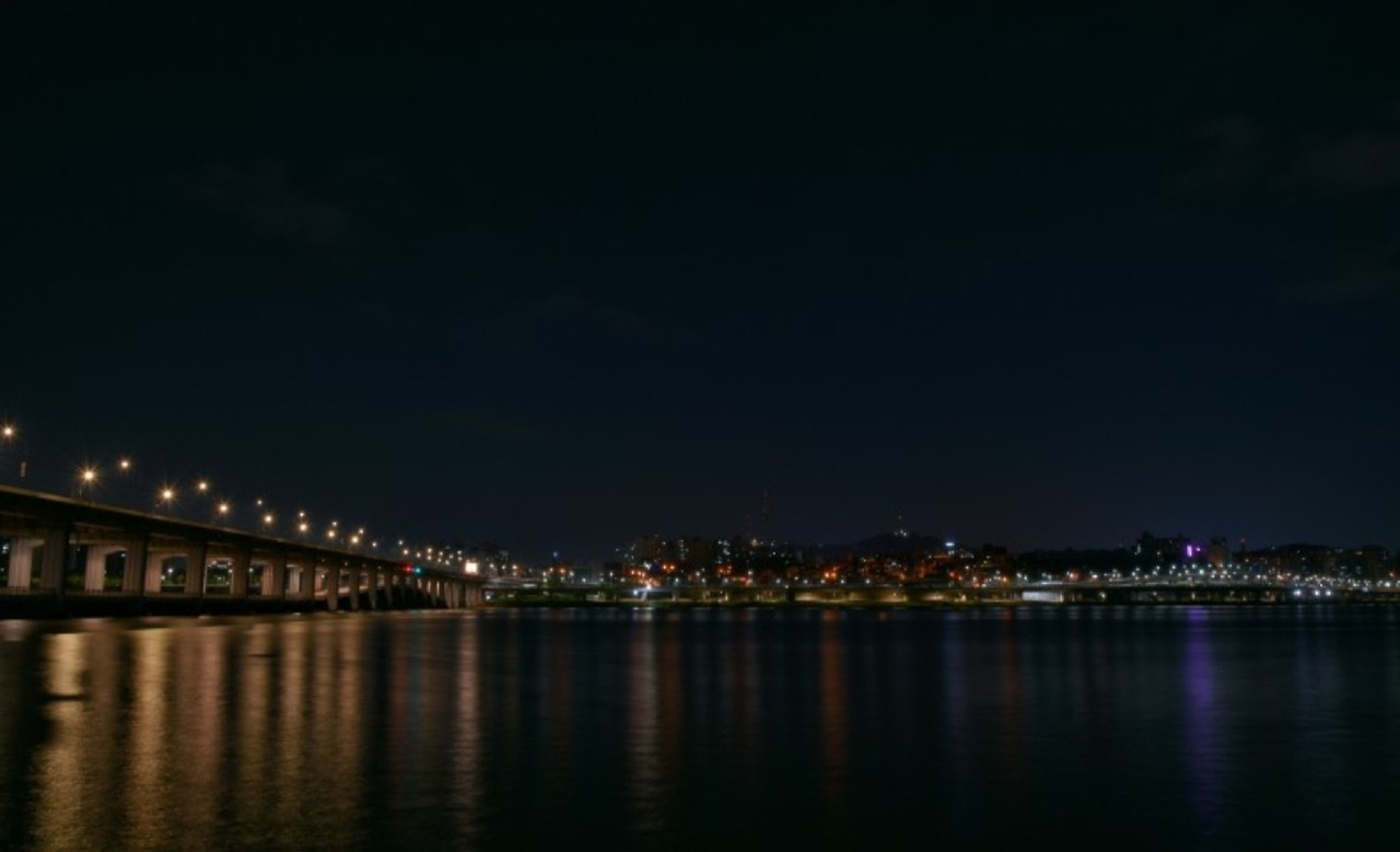 늦은 밤, 인적이 드문 도로를 달리던 차는 빠르게 마포 대교에 진입한다. 강을 건너는 시간은 언제나 짧은 감상에 빠진다. 마무리 공사에 한창인 쌍둥이 빌딩과 강변 따라 꾸벅꾸벅 점멸하는 키높이가 다른 건물들, 검은 무리를 이뤄 잎이 성성해진 나무들과 가로등 빛에 정체를 드러낸 꿈틀거리는 한강의 물줄기.