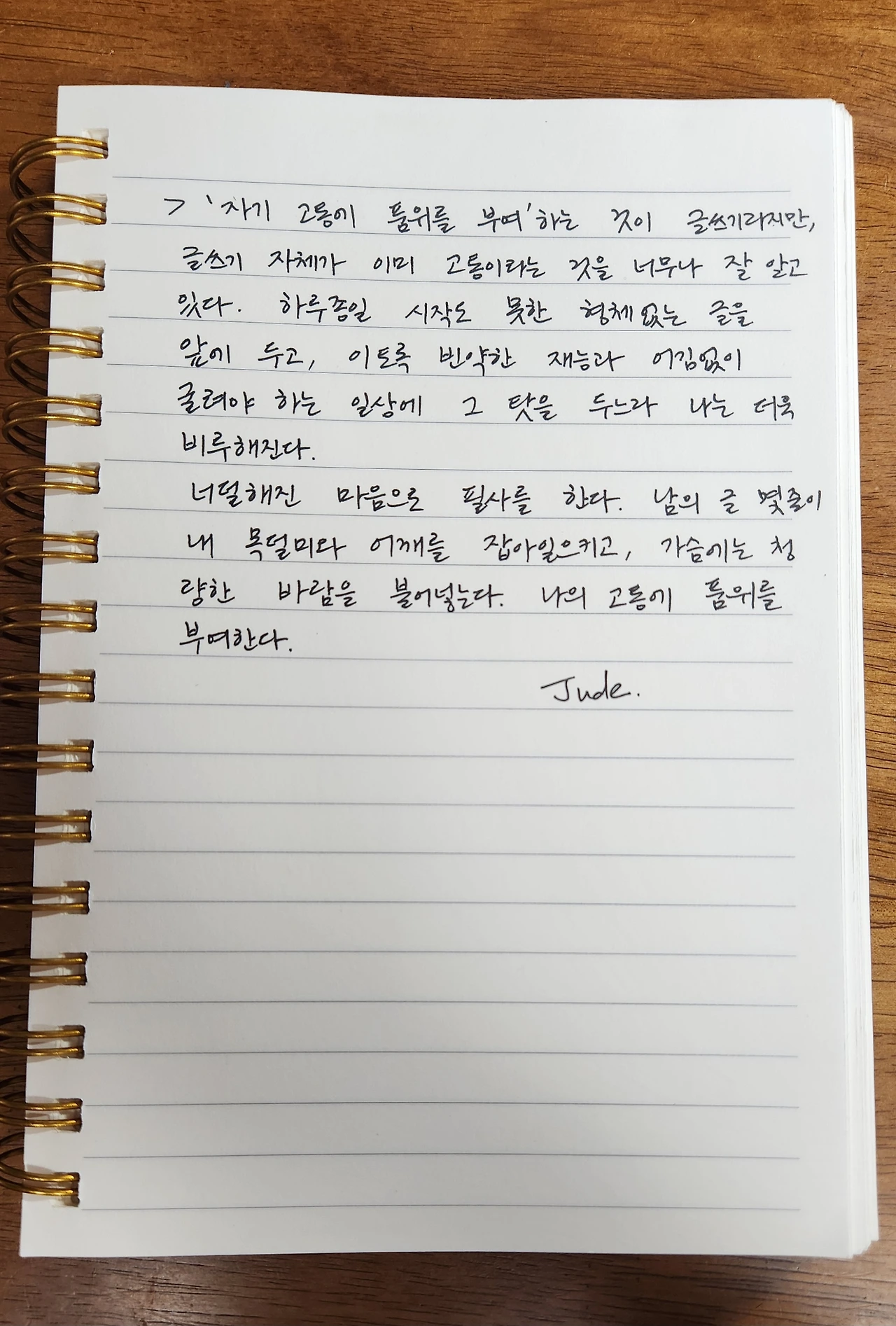 일상 속 스산함이 견디기 힘들어질 때 글을 쓰고, 그게 위로가 된다면 참 좋겠지요.