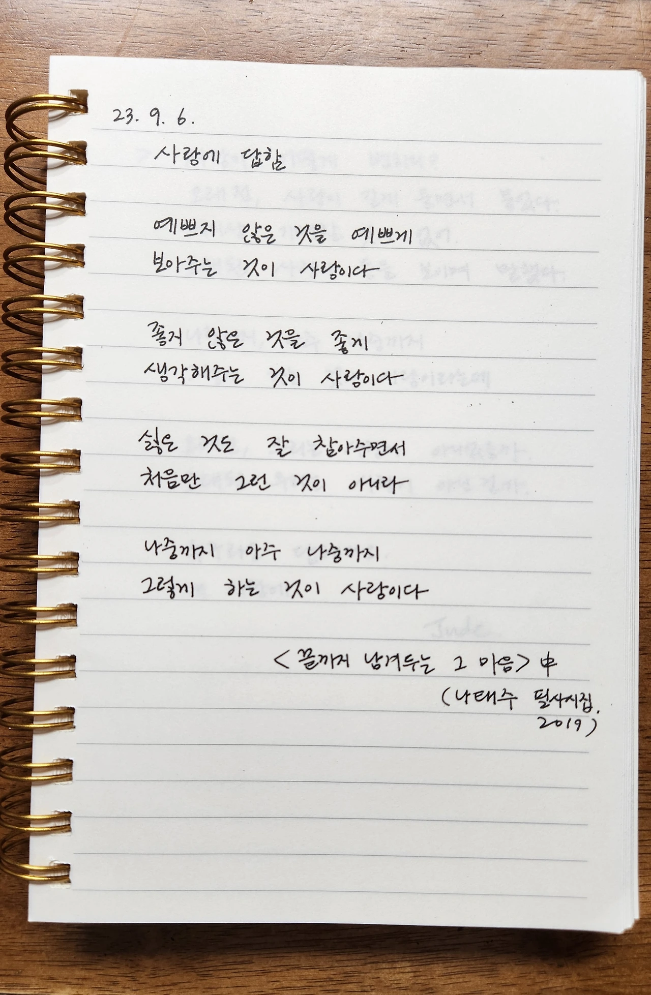 필사 #10 _ 사랑에 답함 _ 나태주