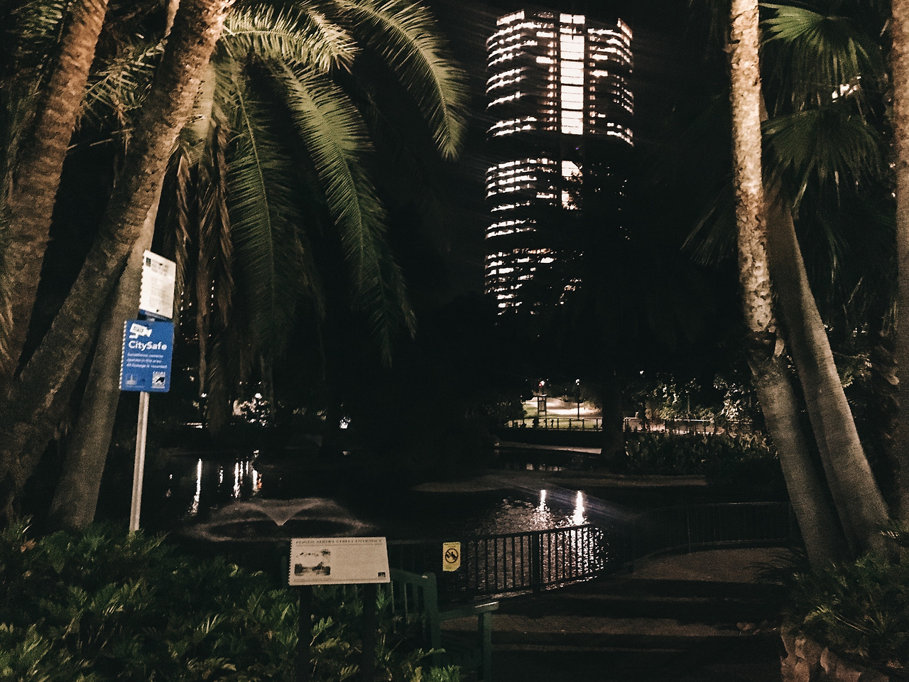 어디가 어딘지 모르지만 일단 무작정 걷기 시작했다. 내가 찾아가야 할 목적지가 확실한 게 아닌 이런 상황에는 보지 않고 정말 발길 닿는 대로 가는 것을 좋아한다. 걷던 길을 끝까지 따라가다 보니 보타닉가든이 나왔다. 10시쯤이 되면 철문이 굳게 닫히는 유럽의 많은 공원들과 달리 여기는 24시간 개방되는 점이 놀랍다. 군데군데 색깔이 변하는 조명이 설치되어 있는 것도 참신했다. 이 정도로 완벽한 날씨에 이런 도심 속 숲이라면 한국 같으면 많은 인파들로 바글바글 할 텐데 여기는 너무 조용하고 한적해서 의아했다. 아직 그렇게 늦은 시간도 아닌데 대체 브리즈번에 사는 사람들은 어디에 있는 걸까?