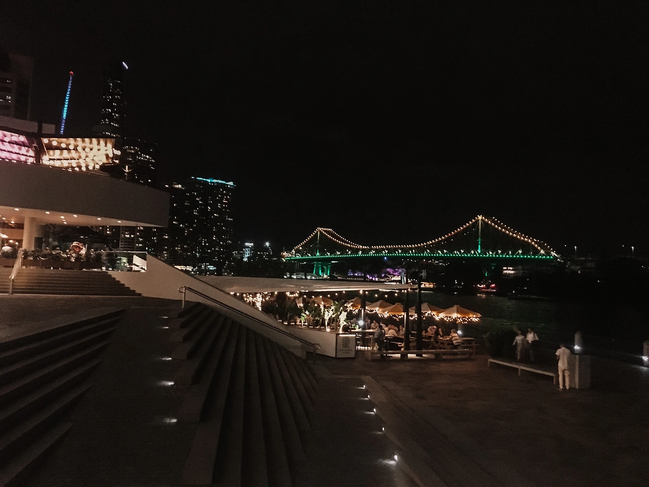 그런 궁금증은 꽤 빨리 풀렸다. 보타닉가든의 강변을 따라 쭉 걸으니 얼마 지나지 않아서 환하게 불 켜진 온갖 레스토랑과 펍이 모여있는 곳이 나왔다. 어젯밤 시티 중심가에서 보고 느꼈던 것과는 정확히 반대였다. 전반적으로 꽤 고급스러운 분위기가 느껴지고 아시안이 아니라 백인이 압도적으로 많이 보인다. 같은 도시 안에 걸어서 고작 2-30분 정도일 뿐인데 인상이나 느낌이 이렇게 크게 차이 날 수 있다는 게 놀라웠다. 역시 단면만 보고 판단해서는 안된다. 브리즈번에 대한 첫인상만 그대로 안고 떠났다면 고작 그게 전부 인 줄로 오해했겠지만 그 대신 몸은 좀 피곤해도 떠나기 전에 브리즈번과 조금이라도 더 친해지기로 결심한 게 다행이라는 생각이 들었다.