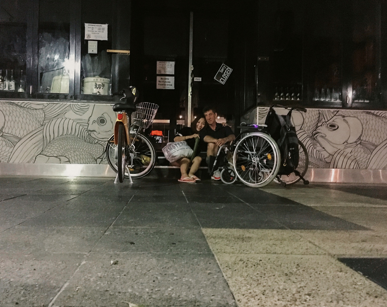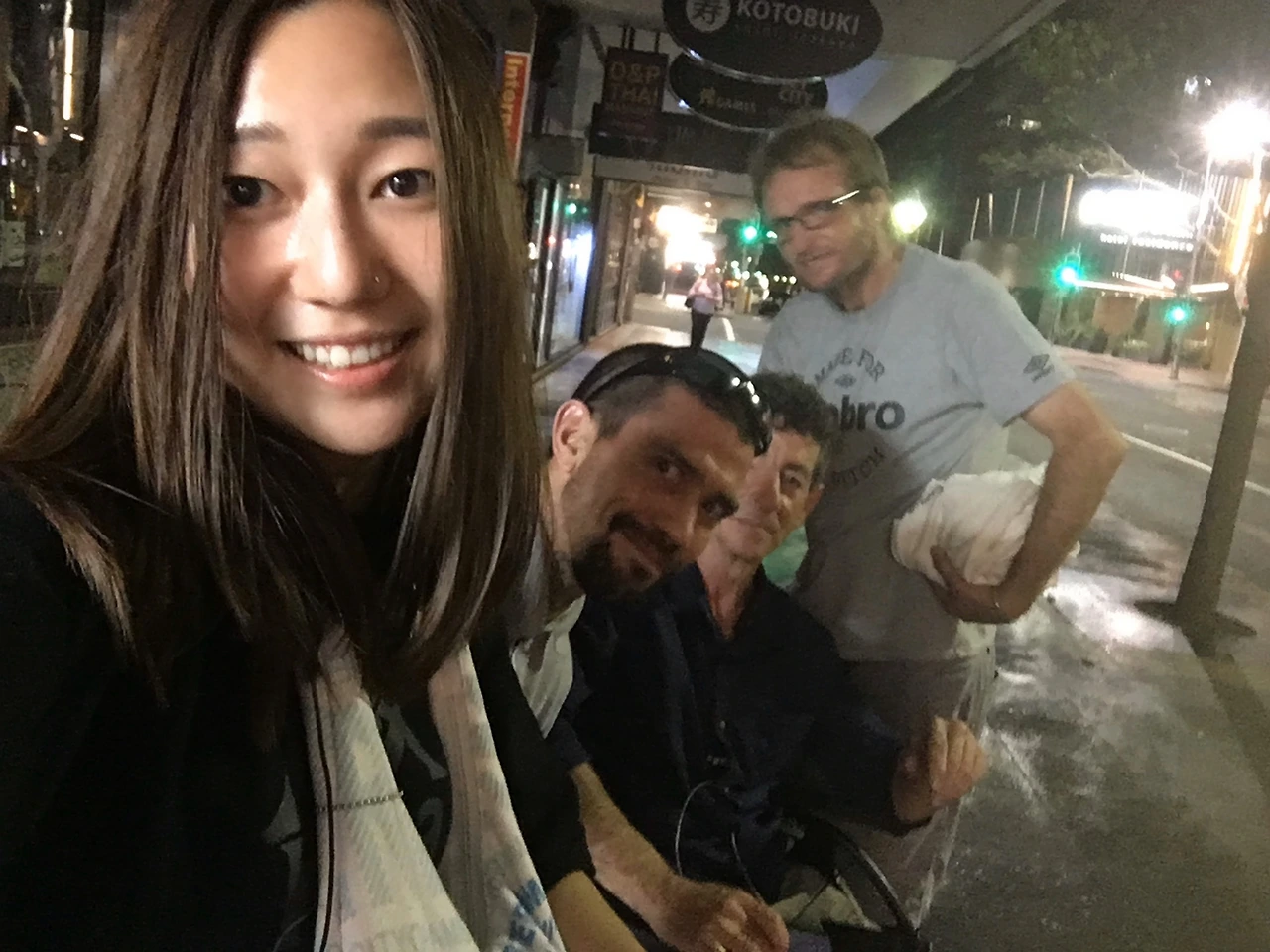 믿거나 말거나, 아무것도 예상하지 못했던 그날 밤 브리즈번에서 정말 믿기지 않는 일을 겪었다. 내게 따뜻한 커피 한잔을 사주신 마음씨도 따뜻한 마스랑 헤어지고 다시 세븐일레븐을 지나가려는 찰나 그 앞 길바닥에 앉아계신 두 분과 휠체어에 앉아계신 한분과 눈이 마주쳤다. 거의 동시에 서로 “Hello, how are you?”라고 인사를 나눴는데 그 인사 한마디가 긴 대화로 이어졌다. 이번에도 직접 묻지는 않았지만 옆자리에 쌓인 짐들을 보아하니 이분들도 왠지 마스처럼 집 없는 부랑자들이라고 유추할 수 있었다.
