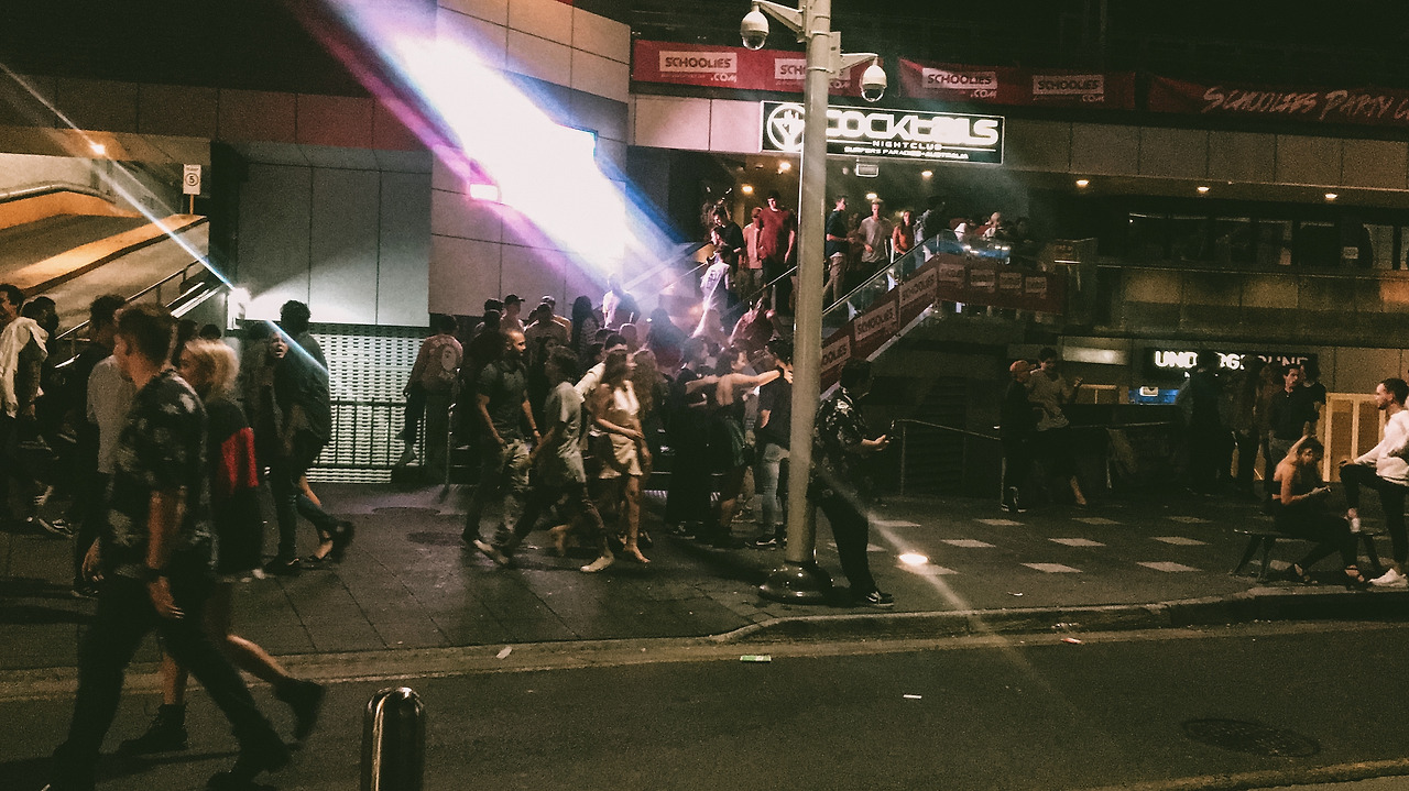 호주에 온 지 며칠 안되어 집 앞에 잠깐 바람을 쐬러 나갔다가 길에서 내게 말을 건 조던은 할아버지 댁 바로 근처에 산다고 했다. 그때부터 조던은 종종 자기 친구들이랑 함께 놀러 가자고 연락이 왔었는데, 그동안은 면접 때문에 그럴 정신도 없고 밤에 딱히 밖에 나가고 싶은 생각이 안 들어 거절하곤 했다. 하지만 조던에게 또다시 연락이 왔던 그날은 토요일이기도 하고 이때부터 스쿨리들이 모여 재밌는 경험이 될 것 같아서 알겠다 하고 조던과 조던 친구 쌔미를 열두 시에 만나 서퍼스 파라다이스에 있는 클럽에 같이 놀러 갔다. 낮에 나갔을 땐 쥐 죽은 듯 한산해서 의아했던 거리가 밤이 깊어질수록 스쿨리들로 북적북적 넘쳐났다. 앳된 얼굴로도 쉽게 구별되지만 스쿨리들은 저마다 목에 스쿨리를 입증하는 카드를 걸고 있어서 한눈에 알아보기가 더 쉬웠다.