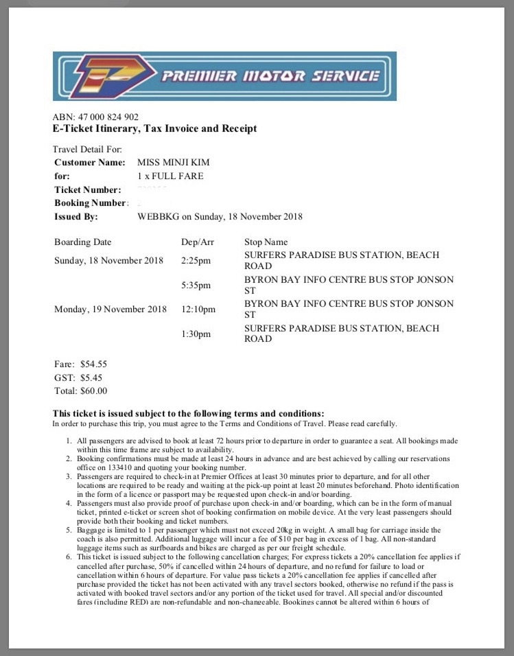 섬으로 들어가야 하는 날까지 2-3일 정도의 여유가 있었다. 골드코스트에서 쭉 있어도 되긴 하지만 그러기는 뭔가 좀 아쉽다. 근교에 짧게라도 다녀올만한 곳이 있나 싶어 찾아보니 차로 한 시간 반 정도 걸리는 바이런 베이라는 곳이 유명한가 보다. 서퍼스 파라다이스에서 직행버스가 있어 오고 가는 것은 쉬운데 찾아보니 왕복 버스값이 60달러나 된다. 버스표를 알아보는 내 옆에서 할아버지가 거기 볼 것도 없고 별로라고 자꾸 강조하셔서 갈지 말지 아침 내내 엄청 고민됐다. 그렇지만 계속 서퍼스 파라다이스에서만 있다 보니 다른 곳은 어떨까 싶어 결국 당일날 급하게 가기로 결정하고 버스표를 예매했다.