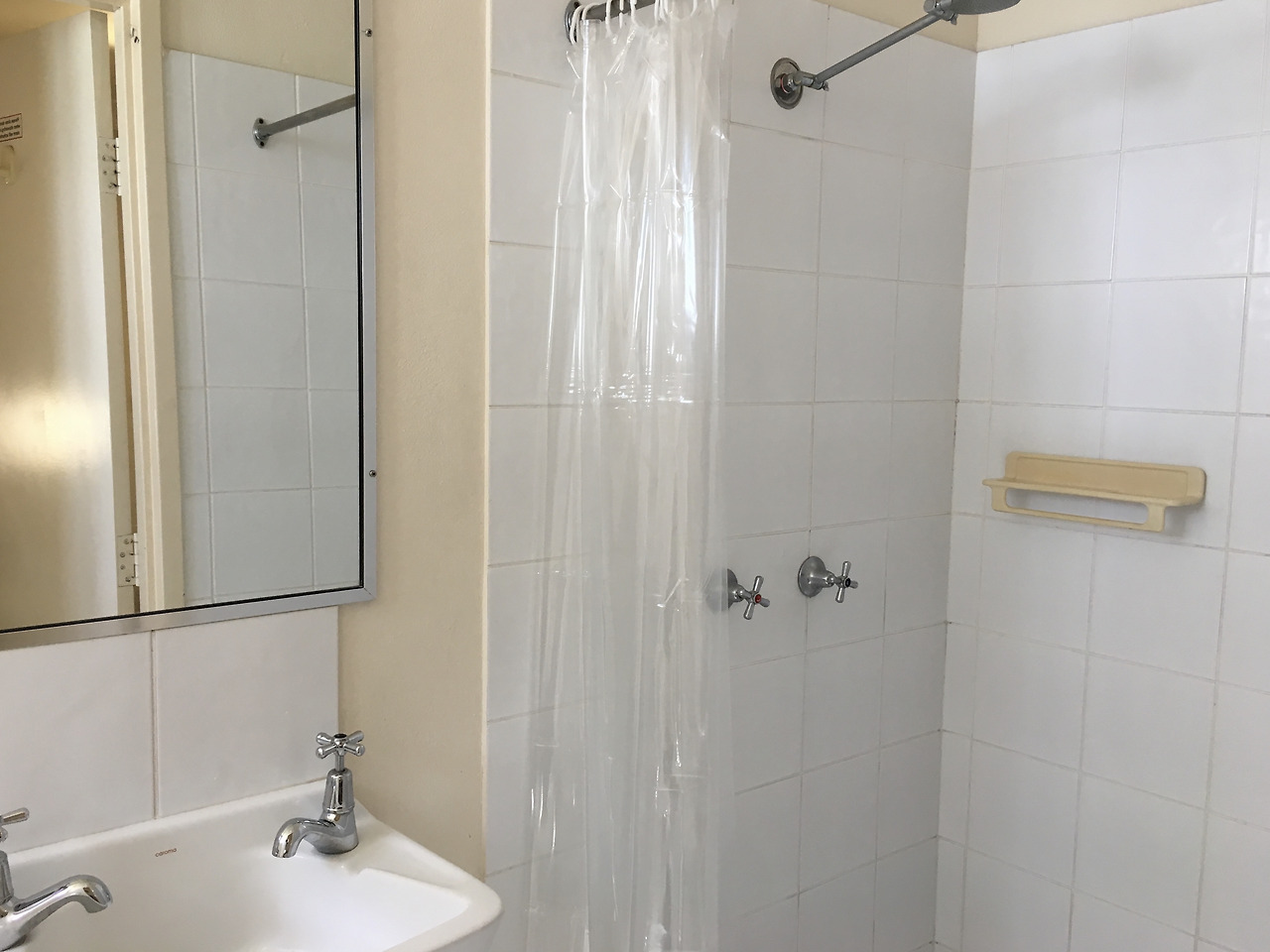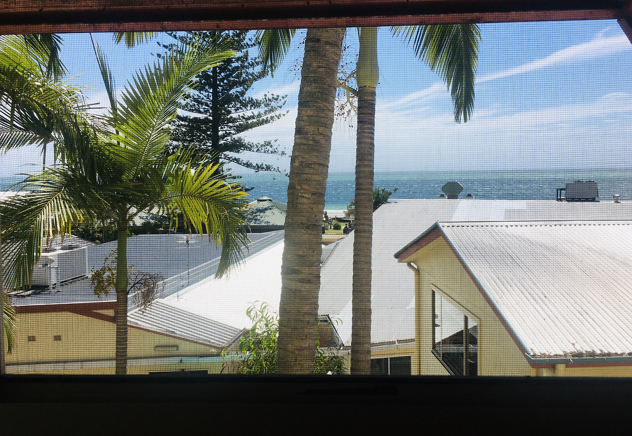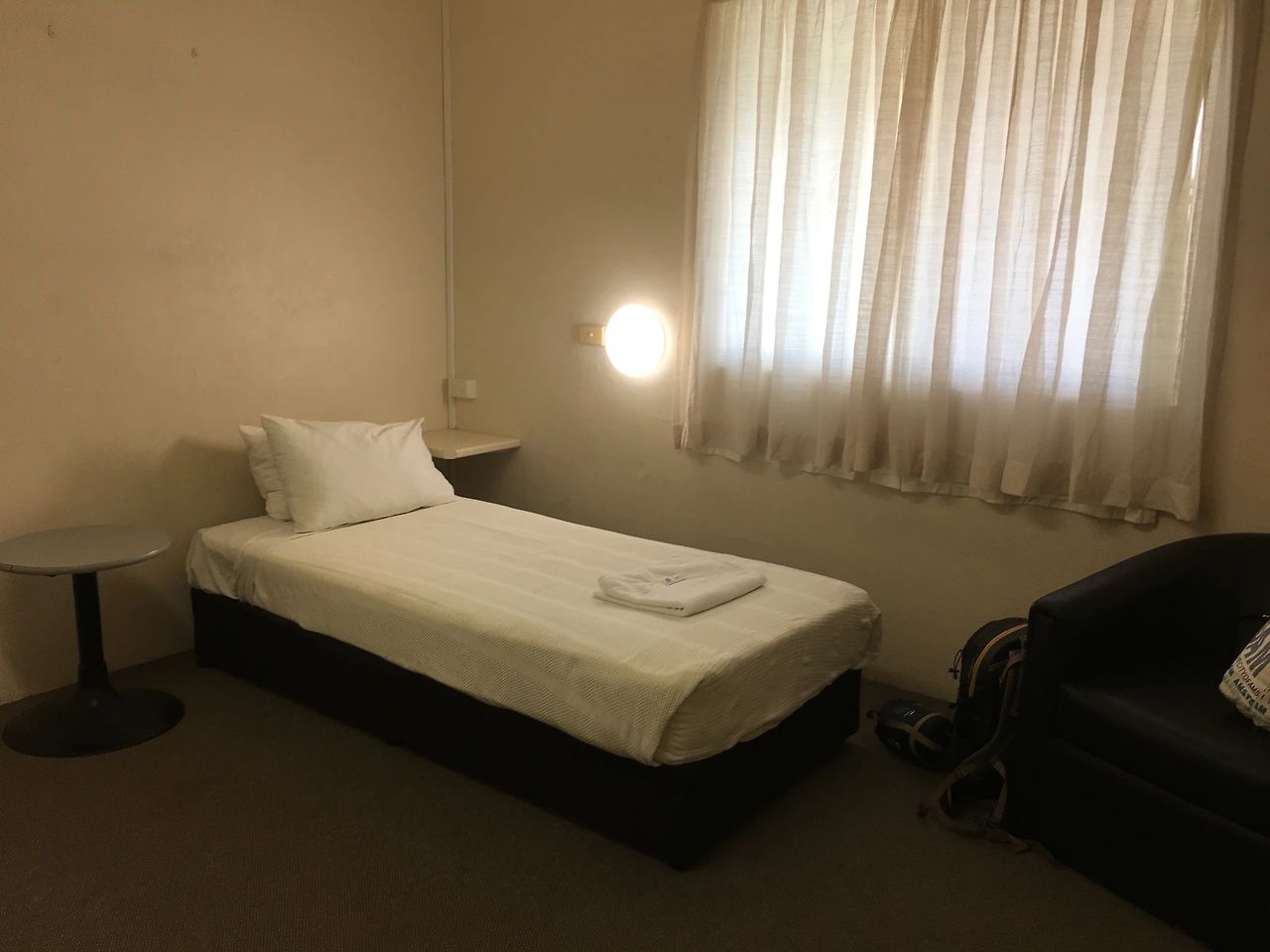 개인적으로 좋아하는 숫자 중 하나가 10이라 방 키를 받자마자 기분이 좋았는데 방문을 열어보고 나서는 저절로 탄성까지 나왔다. 비록 화장실만 딸려있는 방 한 칸이지만 나 혼자 지내기엔 넉넉하고 무엇보다도 침대 옆쪽에 나있는 창문으로 바로 보이는 바다와 야자수 풍경이 그림 같아 사실 그 자체만으로도 충분히 좋았다. 심지어 화장실 변기 위로 난 창문으로도 야자수와 파란 하늘이 보인다. 화장실 주제에 이런 뷰라니. 침대 위에 가지런히 접힌 수건 위에 놓인 MINJI라고 적힌 명찰도 눈에 띄었다. 그걸 보니 그제야 실감이 나기 시작했다.