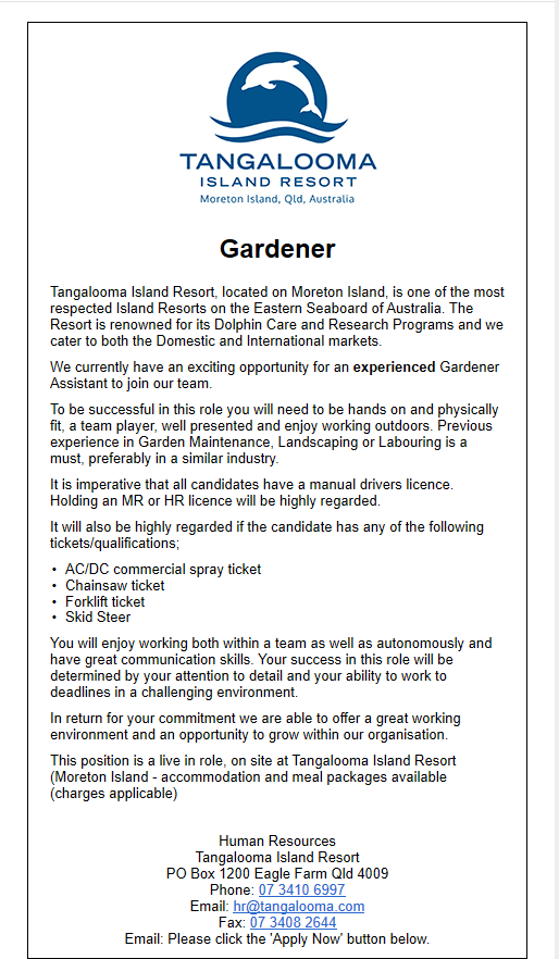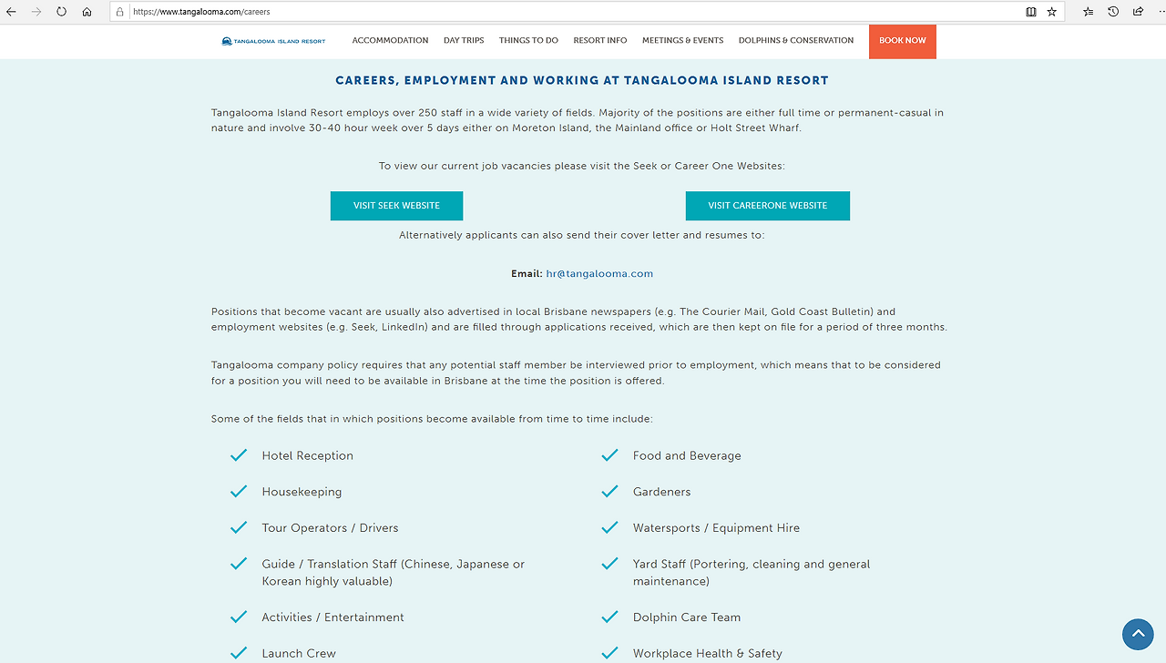 여기서는 보다시피 자체 홈페이지를 통해서는 어떤 일을 구인 중인지 확인하는 것과 지원하는 게 둘 다 불가능하지만 SEEK과 CAREER라는 두 구인공고 홈페이지에 올라온 포지션에 지원하거나 아니면 탕갈루마 인사담당자에게 직접 이메일을 통해 지원할 수 있도록 메일 주소가 함께 기재되어 있다.