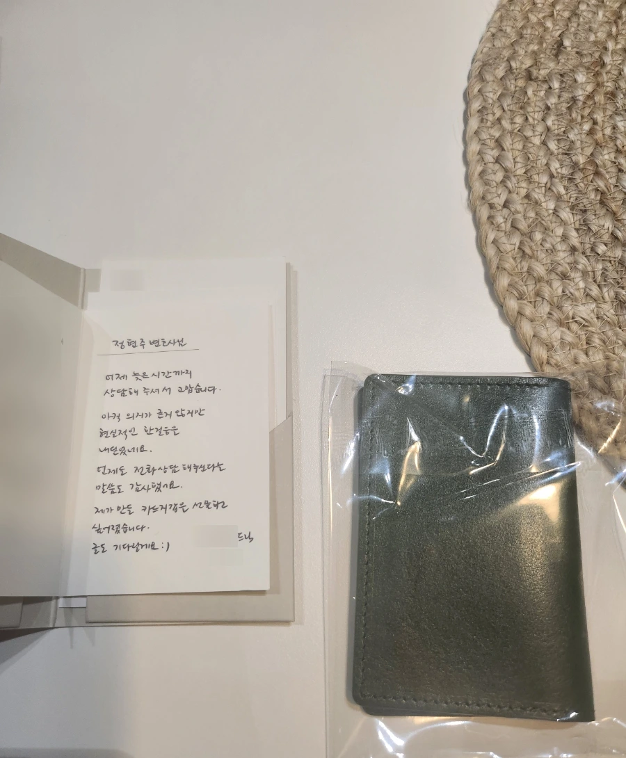 부산 출장을 마치고 피곤한 몸을 이끌고 사무실에 돌아오니, 내가 주문하지 않은 택배가 내 이름으로 와 있었다. '가죽 제품'이라고 해서 무엇인가 싶었는데 ㅡ 이토록 예쁜 선물이 담겨 있었다.