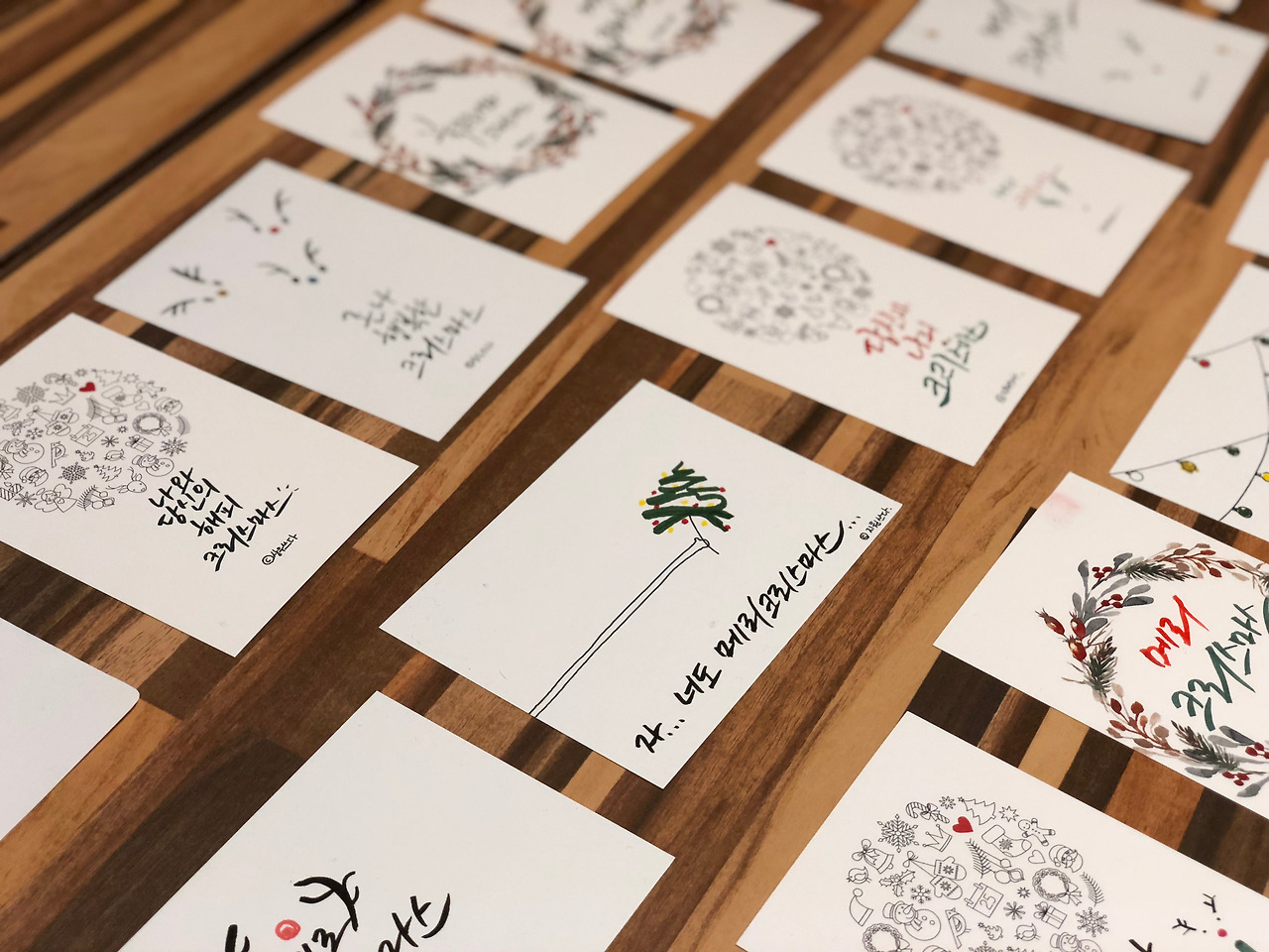 캘리그라피의 가장 큰 기쁨은 글씨로 내 주변을 밝히는 순간에 찾아옵니다. 악필도 교정 해주고, 내 지친 마음을 달래주는 힐링을 주기도 하지만, 누군가가 나의 글씨로 기뻐하는 순간만큼 좋은 때가 없었습니다. 친구의 결혼, 생일은 물론, 연인과 함께 보내는 크리스마스에 내 글씨가 더해진다면 얼마나 더 풍성해질까요?