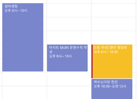 다만 남들과 다르게 시간을 활용하는 노하우가 있었다면, 친구들을 만나는 모임과 같은 일정처럼 '할 일'을 위해서도 일정을 만들어줬다는 것이다. '오늘은 뭐 하세요?'라는 질문에 '오늘은 사이드 프로젝트를 위해서 시간을 내는 날이에요'라고 것처럼 말이다. 사람들은 주말에 모든 계획을 몰아 넣지만, 구체적으로 언제 어디서 일을 할 것인지는 정하지 않는다. 사람을 만날 때는 꼬박꼬박 시간과 장소를 잘 정하면서 말이다.