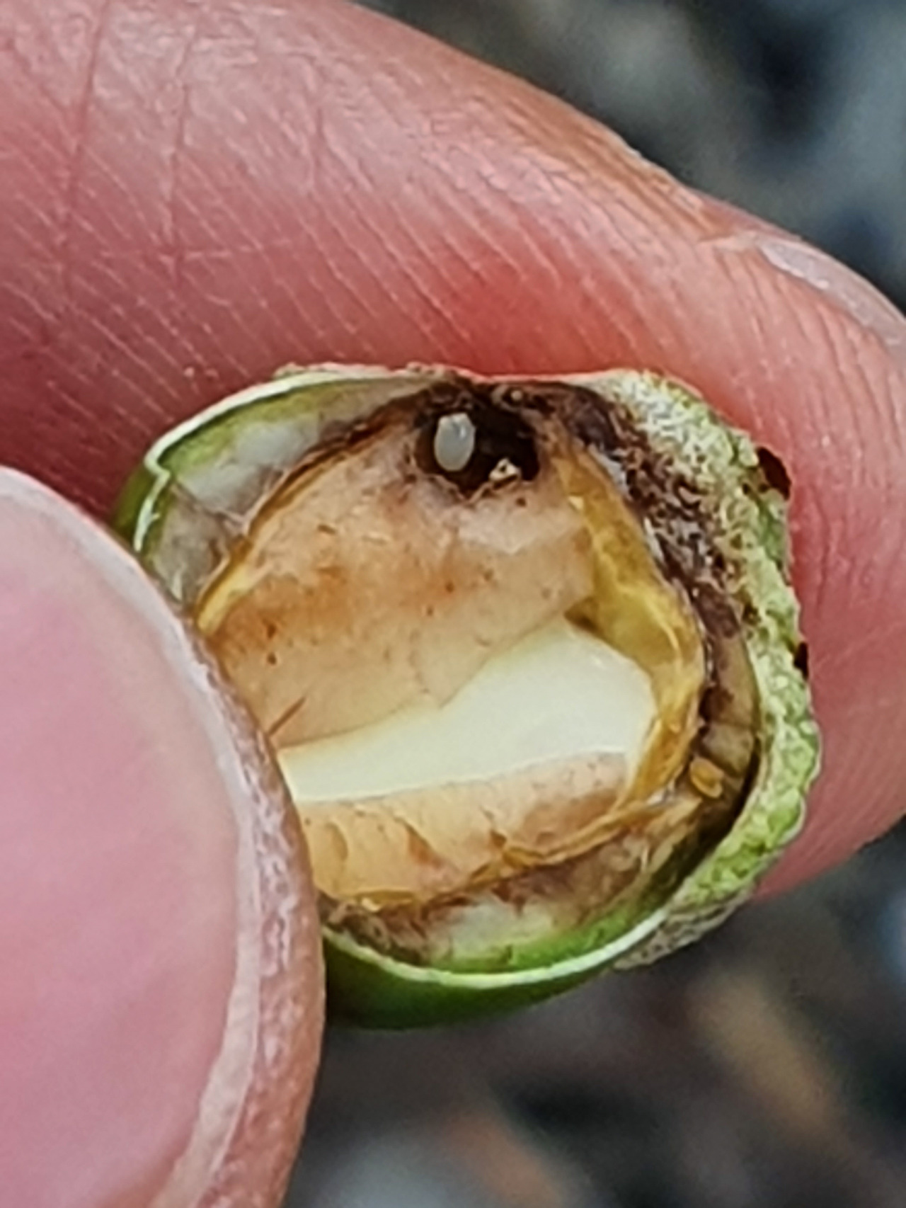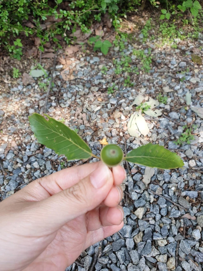 떨어진 작은 도토리에서 작은 도토리 벌레를 찾았다.