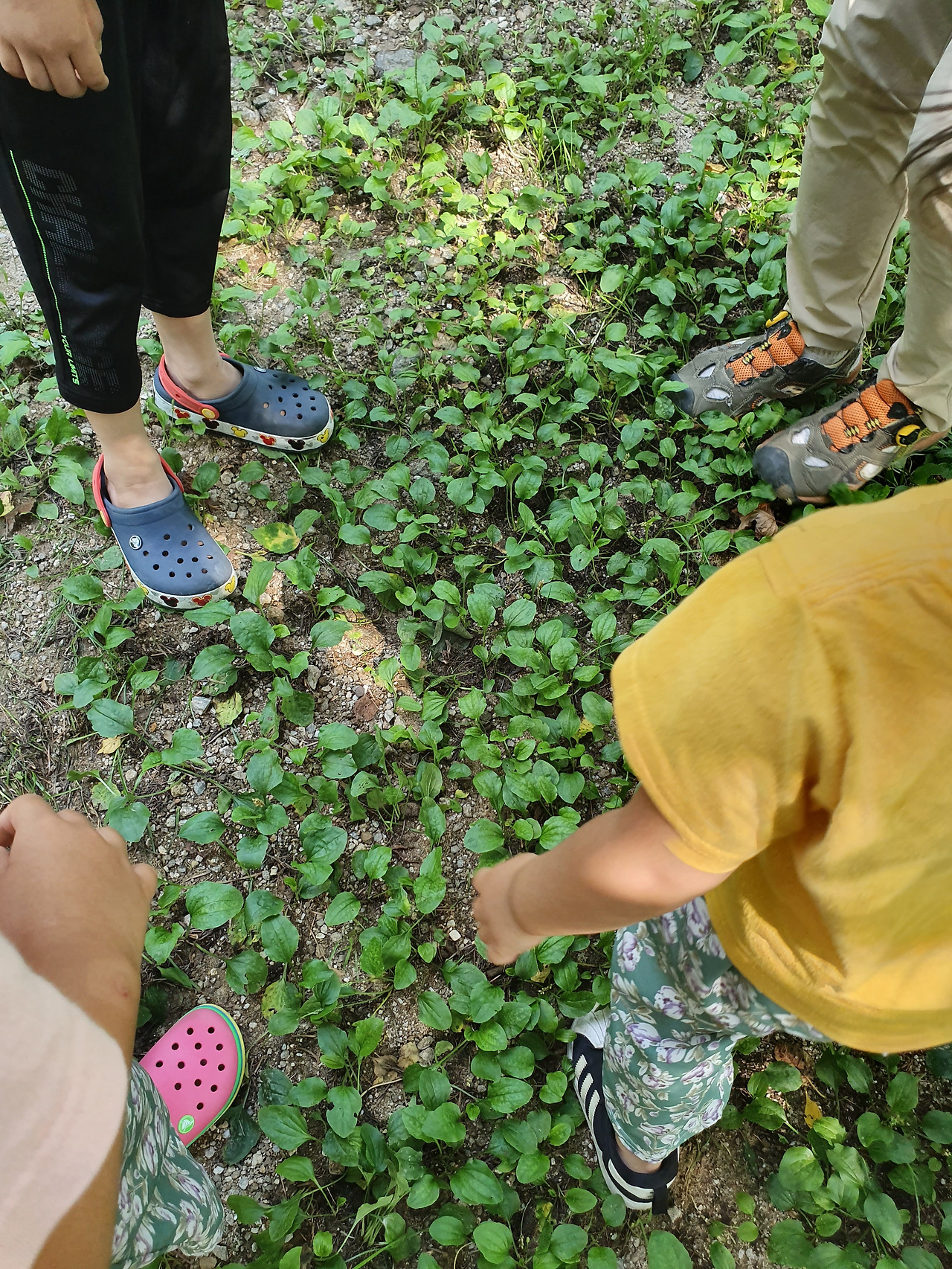 산속에서의 아침 치고는 좀 늦은 아침이었지만 산책을 가야 한다는 남편을 따라 아이들을 이끌고 가까운 산책로로 향했다.