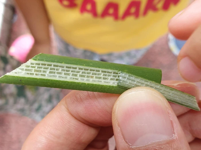 잎을 당기면 실 같은 엷은 줄기가 여러 겹 나온다.