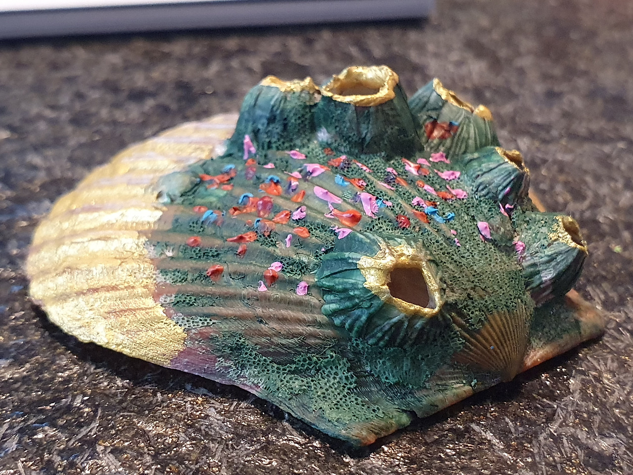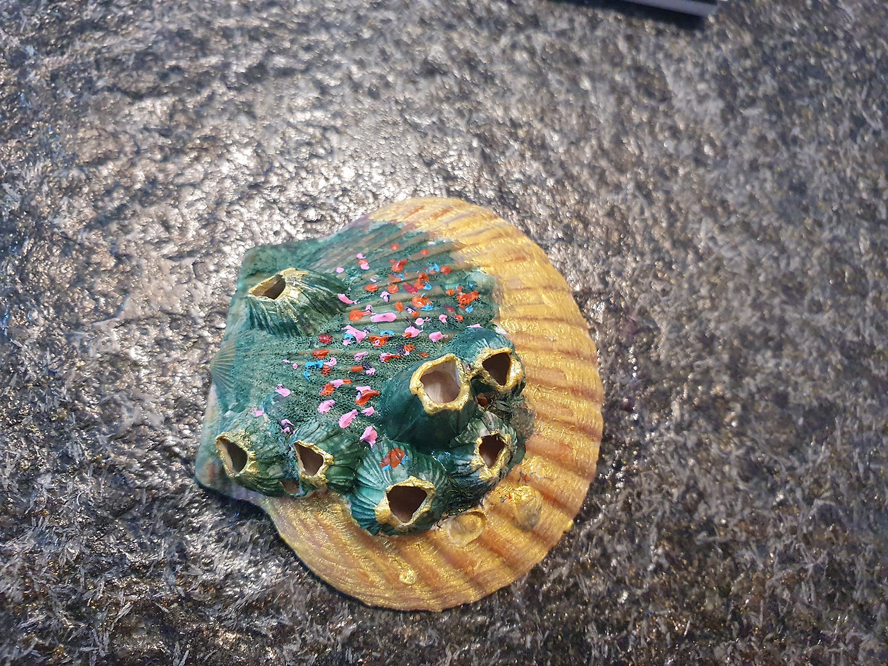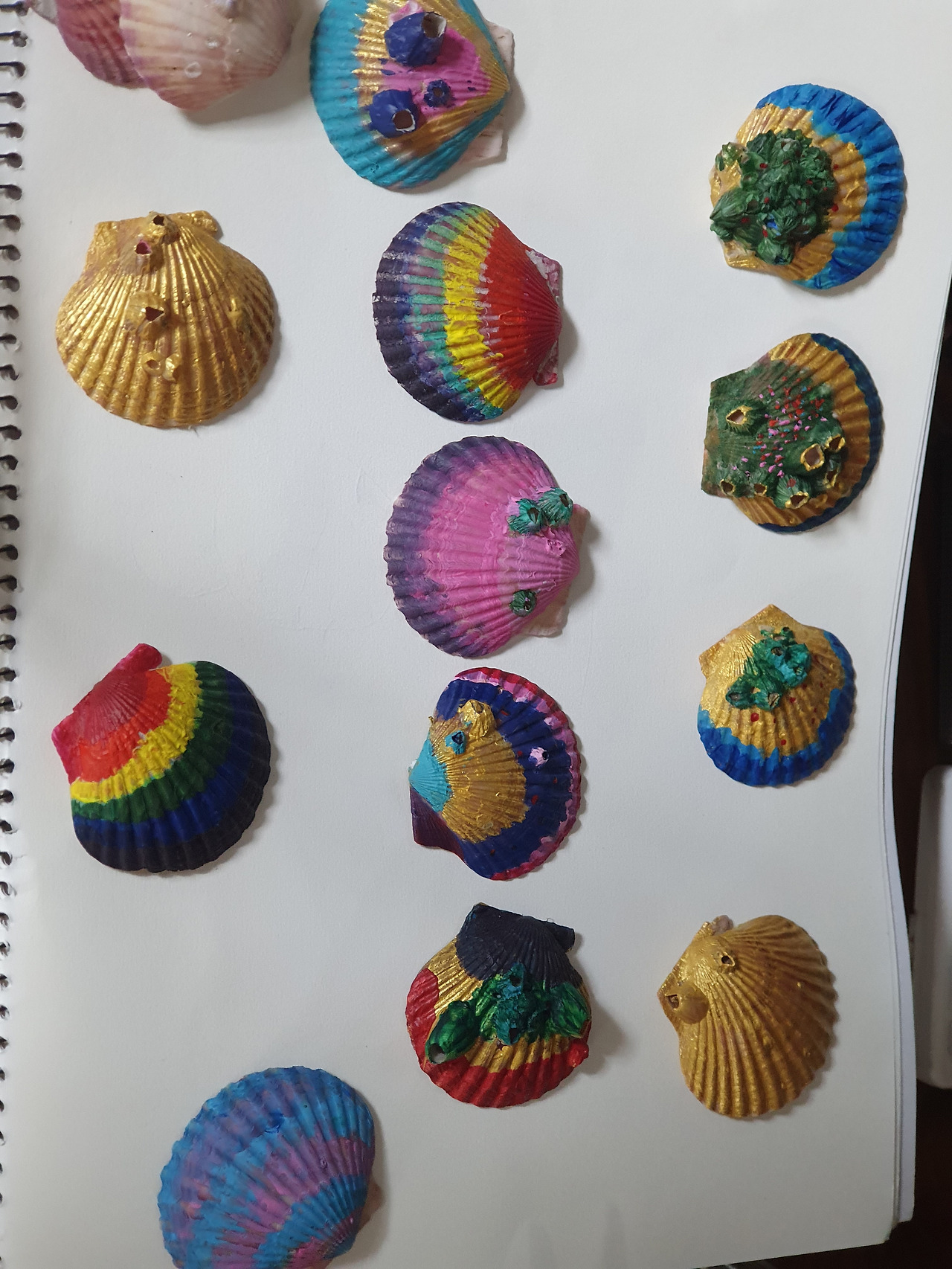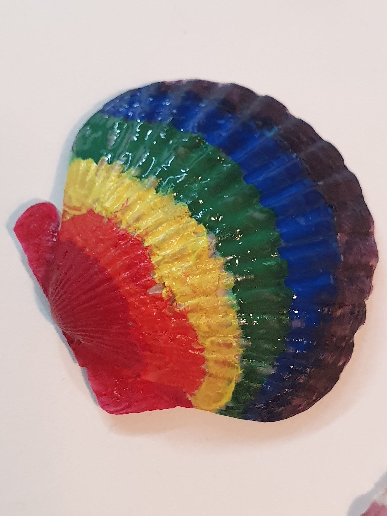2. 잘 말린 조개 위에 아크릴 물감을 이용해 색칠한다.