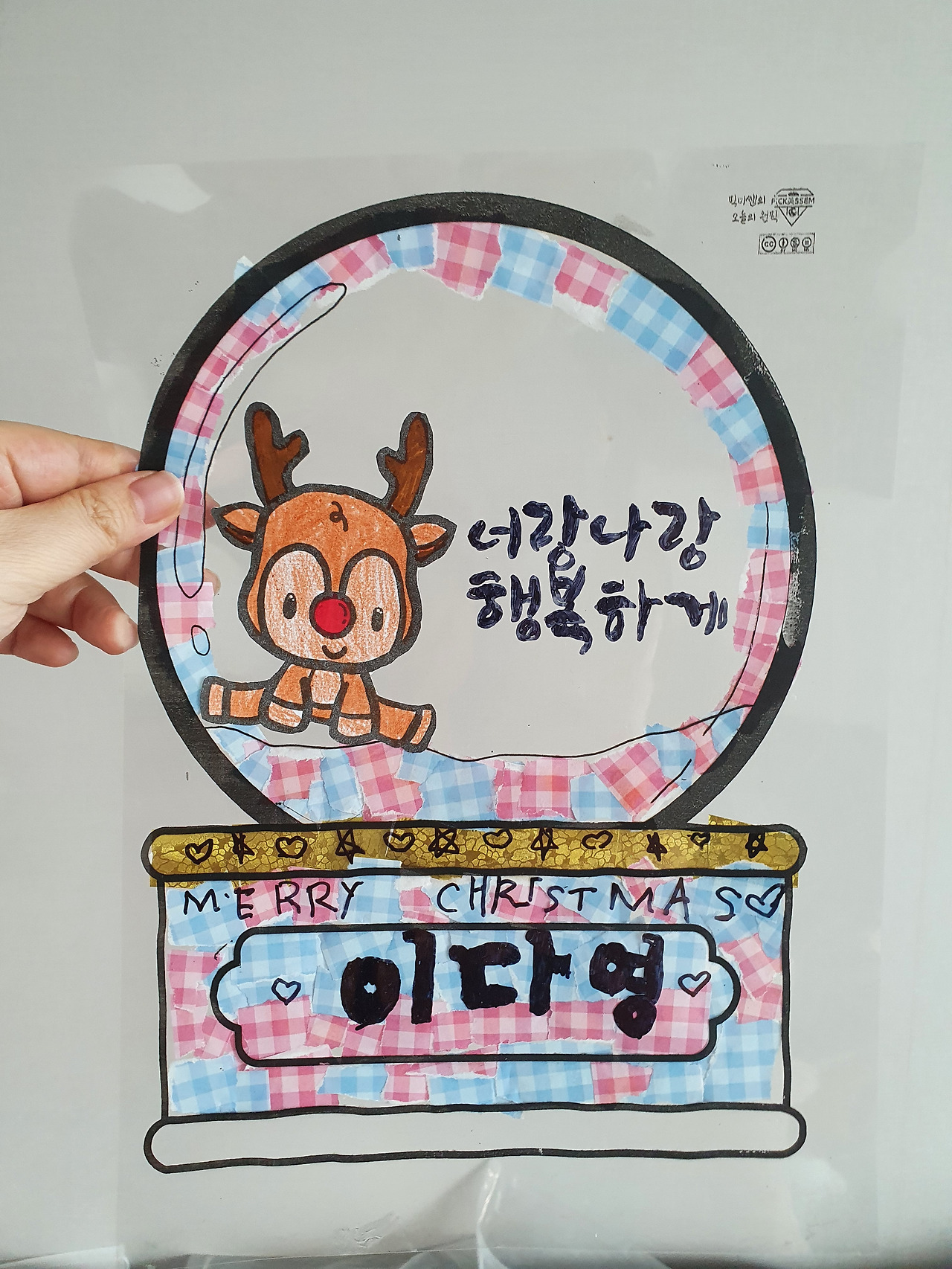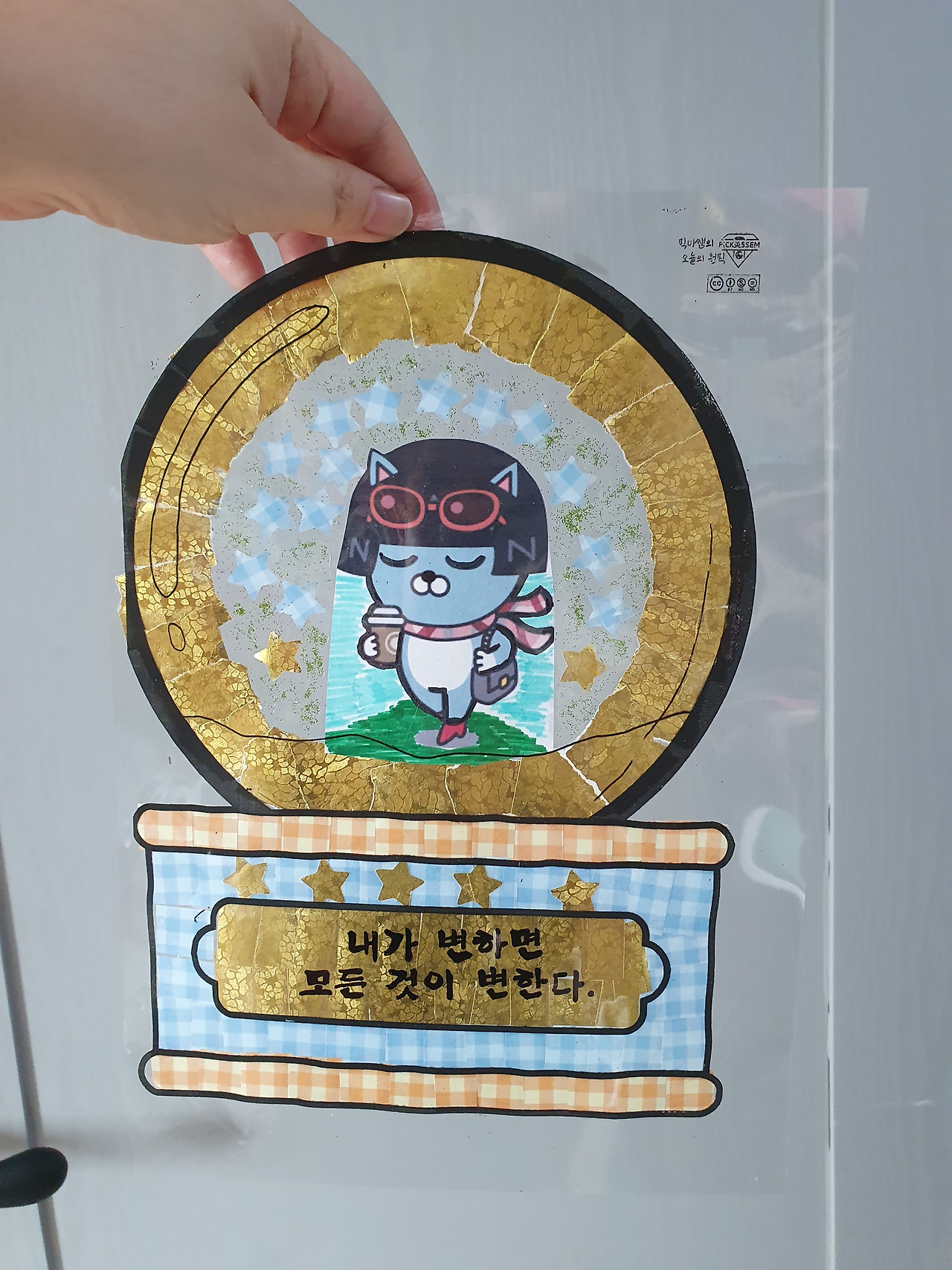 준비물 : OHP필름지, 캘리 문구, 색종이, 가위, 풀, 예쁜 그림, 색연필, 검정 네임펜 혹은 유성펜