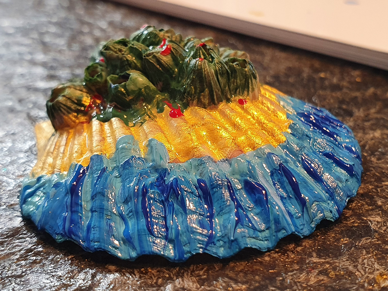 3. 아크릴 물감이 마른 후 바니쉬로 마무리하면 반짝거리는 효과가 있다.