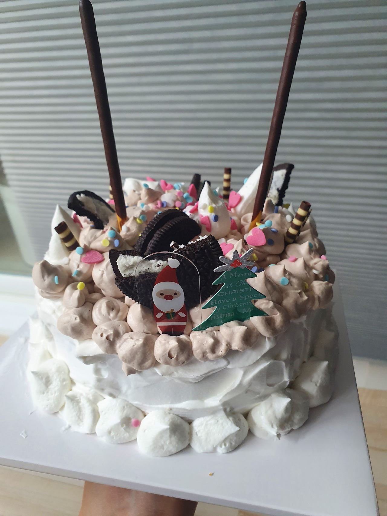 3. 초코크림과 생크림을 섞어서 초코 생크림으로 모양을 꾸민다.