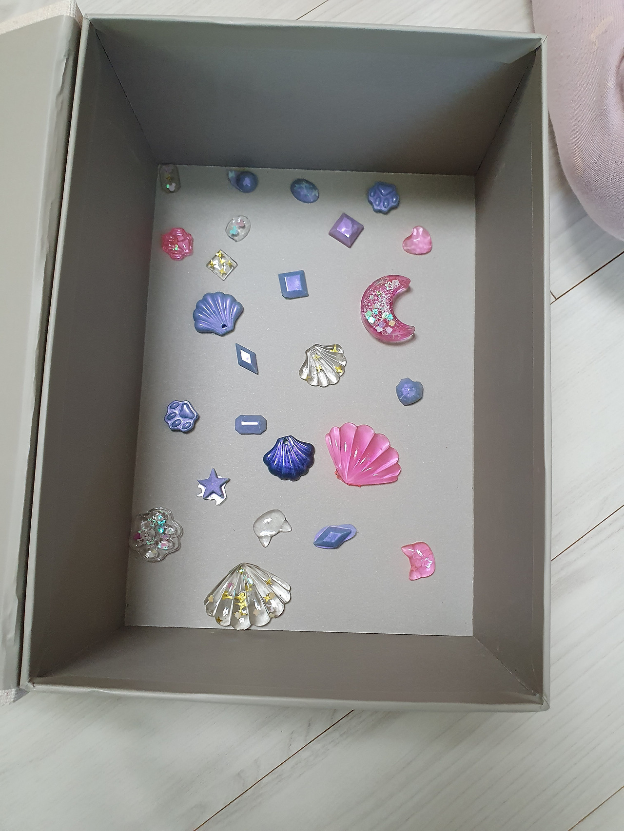1. 실리콘 몰드에 레진을 넣고 원하는 색소와 반짝이로 꾸민다.