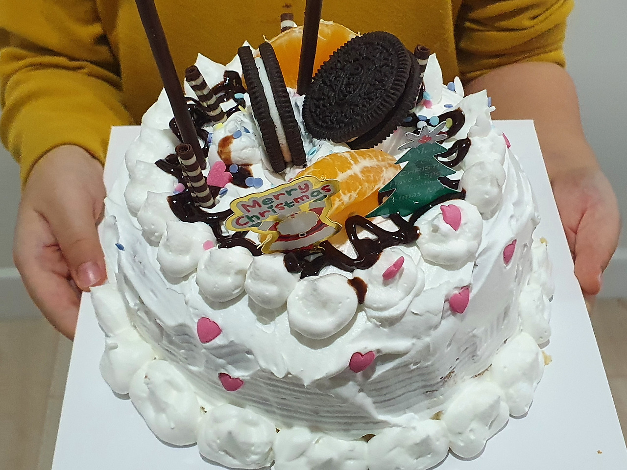 2. 빵 위와 옆면을 생크림으로 모양을 내준다.