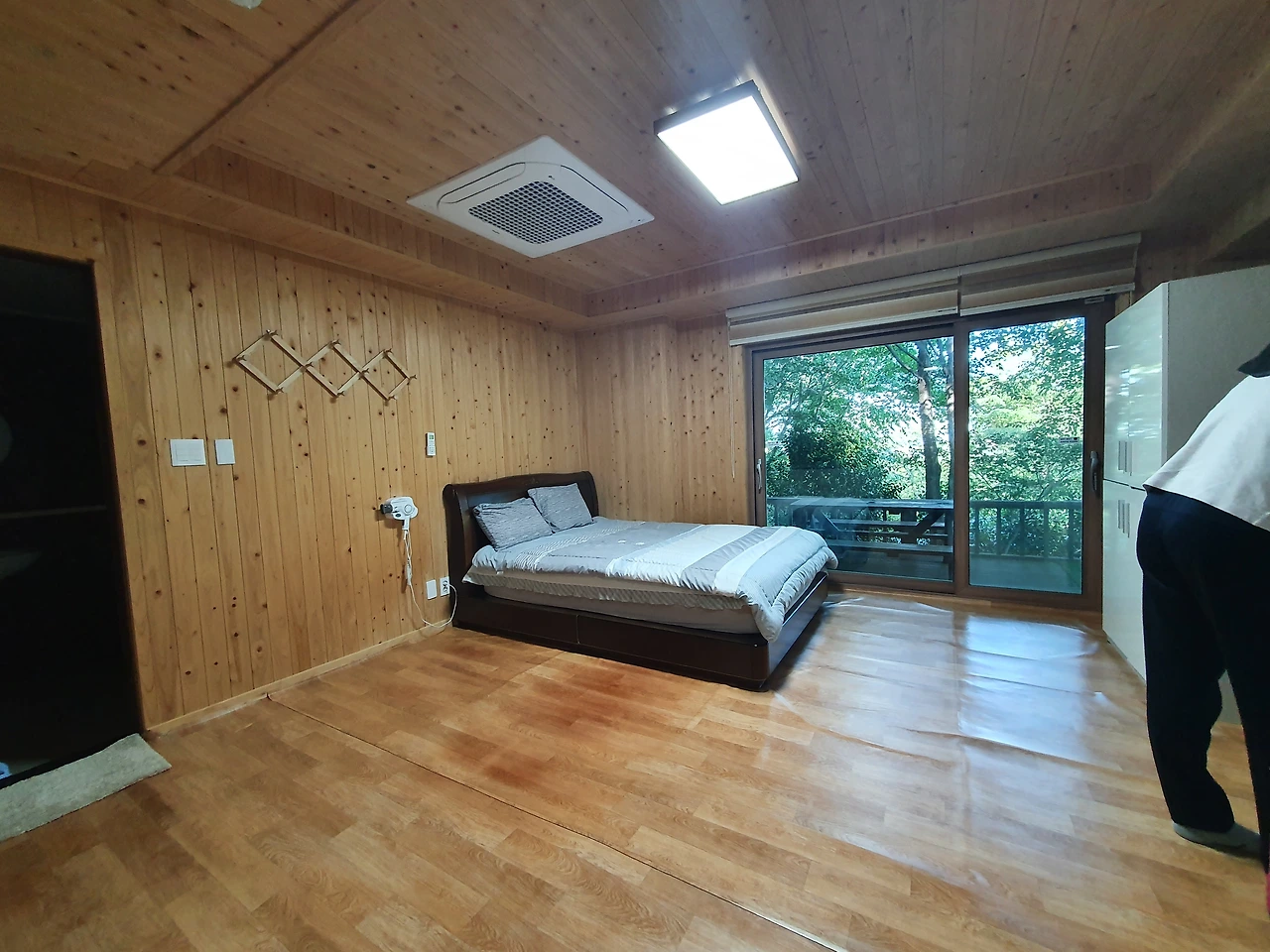 휴양림에서 침대를 만날 수 있다는 건 생각치도 못했지만 반가웠다. 바닥이 좀 배길거라 생각했었는데 다행이 남편의 양보로 아이들과 편안하게 침대에서 잘 수 있었다.