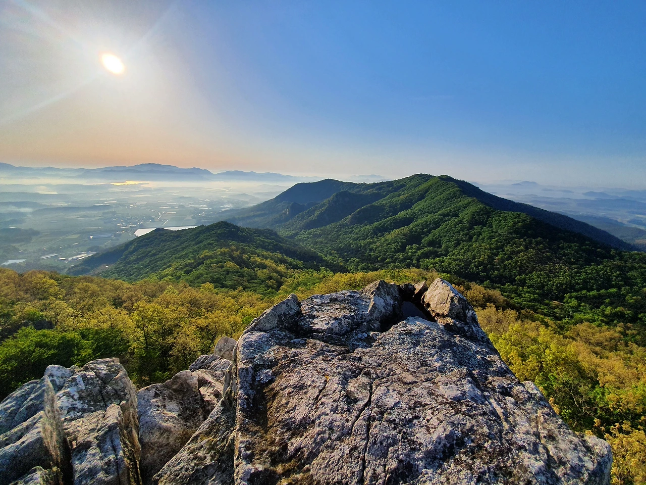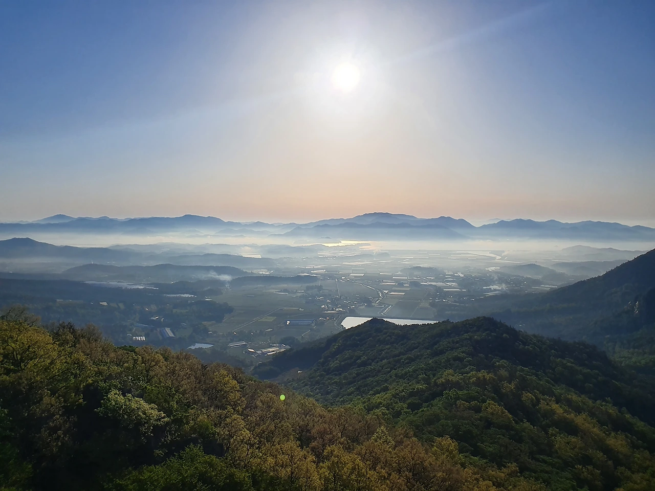 다음날 아침 일어나자마자 남편은 외출을 준비했다. 해돋이를 보겠노라며 떠난 남편은 카톡으로 몇진 사진 한 장을 보내왔다. 산책로를 따라 갔는데 몇 미터 올라가지 않았지만 산이 매우 험한 편이라 했다. 아침에는 안개도 자욱했다고...
