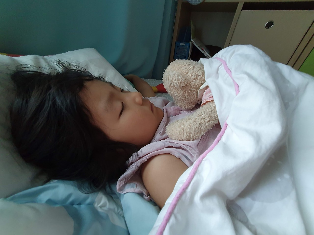 잠에서 깬 아이가 신경질을 내다가 울어버렸다.