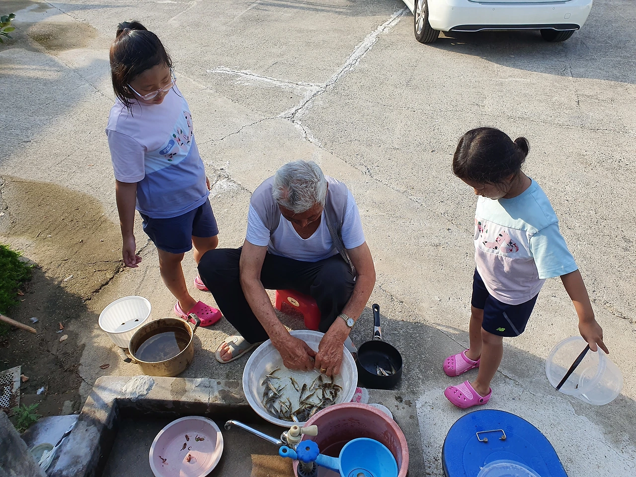 통발 낚시로 잡은 물고기들을 물고기 어장(?)만들어 모아두었다. 남동생과 사촌동생들은 매미채를 들고, 혹은 가재를 잡겠다며 냇가로, 뒷산으로 뛰어다녔다.