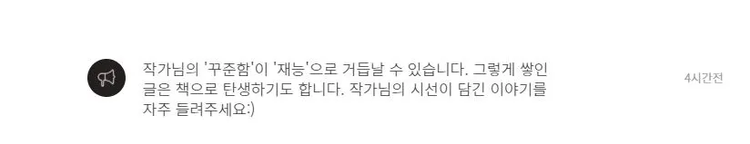 브런치에서 알람이 울렸다. 글을 계속 열심히 쓰라고....