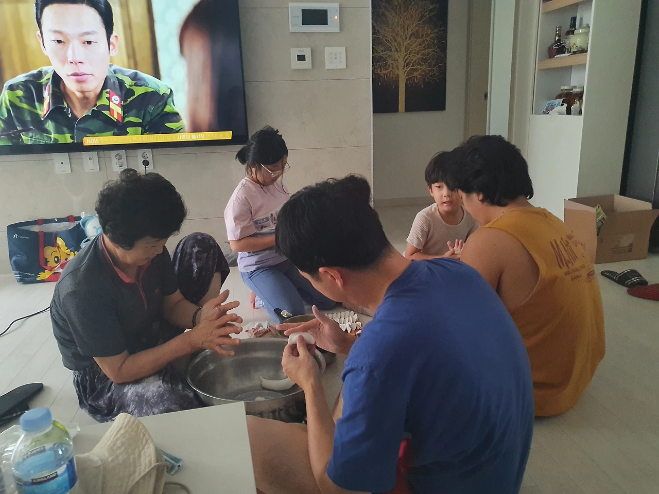 거실 한가운데서 모두가 함께 송편을 빚고 있어서 마음이 너무 불편했지만 송편을 빚는다고 시어머니를 원망하고 미워하지 않기로 했다.