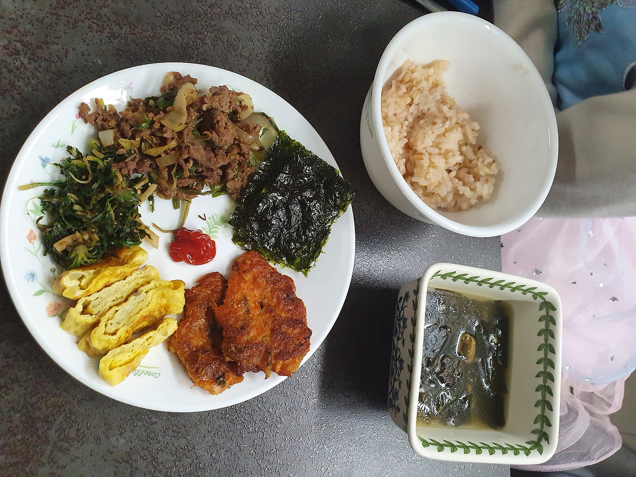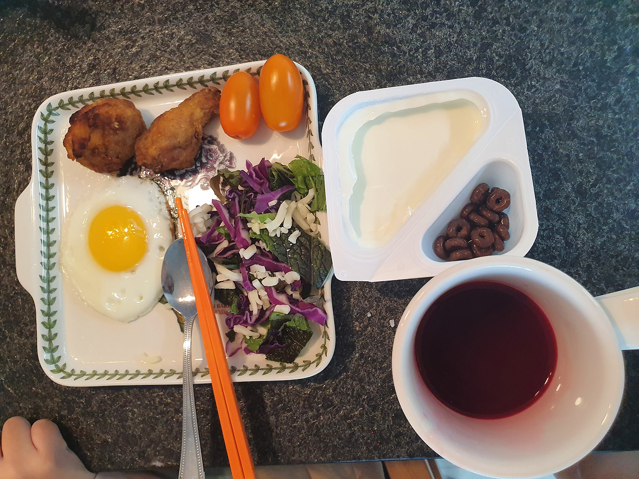 피곤한 몸을 벌떡 일으켜 식탁 앞에 1번으로 앉는다.