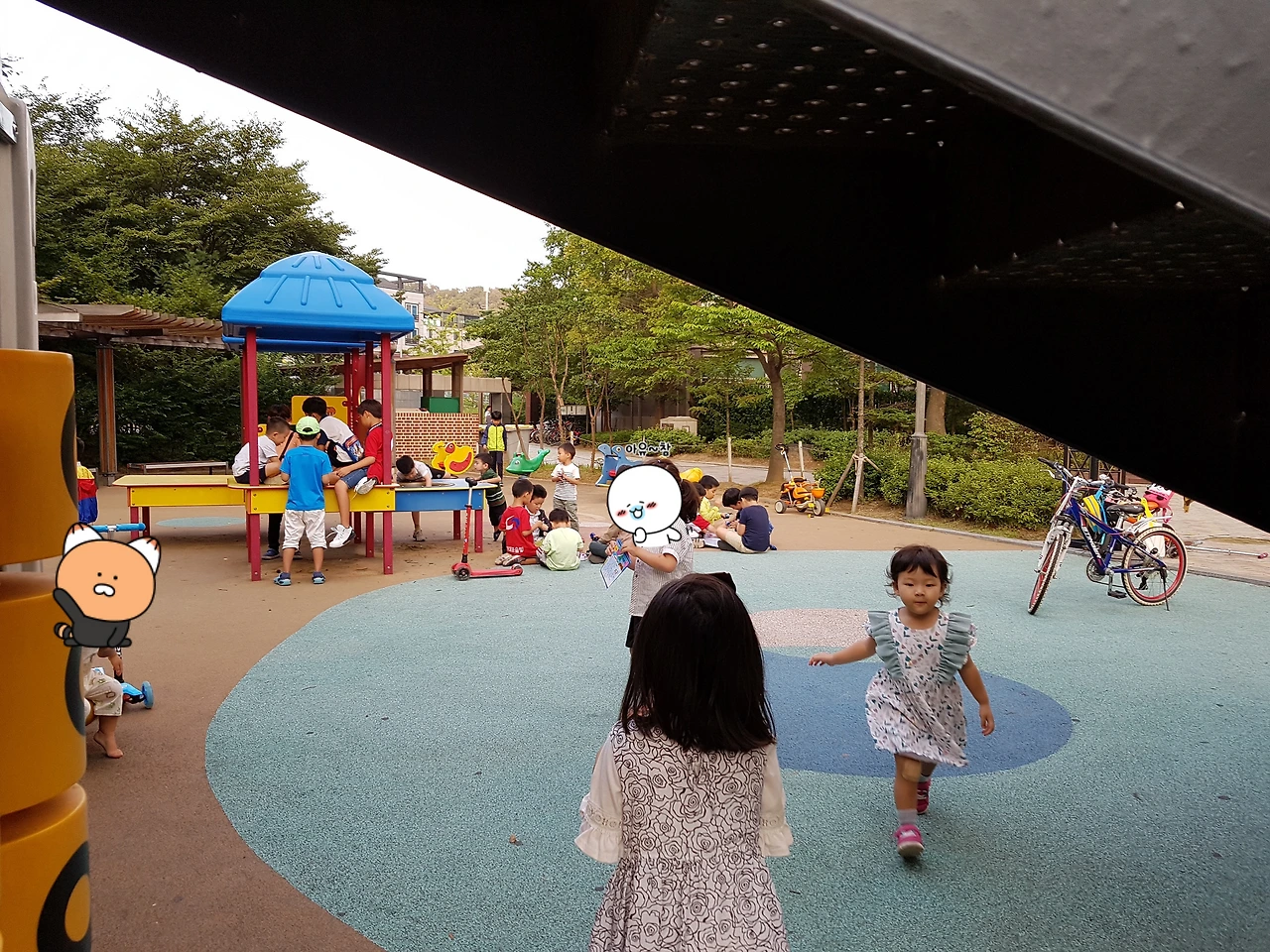 시간별로 노는 아이들이 다르다. 먼저 오후 2시가 넘으면 유치원 아이들이 하원을 하고 놀이터에서 논다.