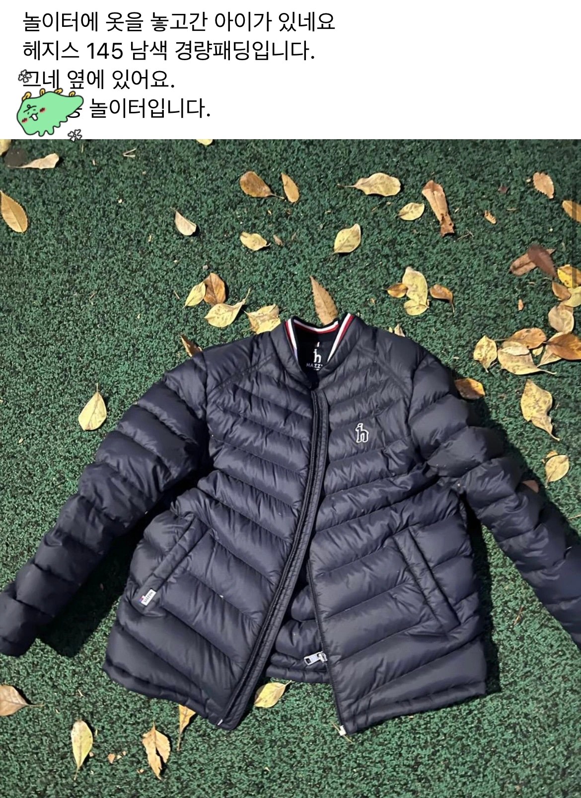 잃어버린 물건을 보면 누군지도 모르는 아이의 엄마가 걱정되어 사진을 찍어 아파트 커뮤니티나 맘 카페에 사진을 올린다. 운 좋게 주인을 찾아가는 경우도 있고, 그냥 사라지는(?) 경우도 있다.