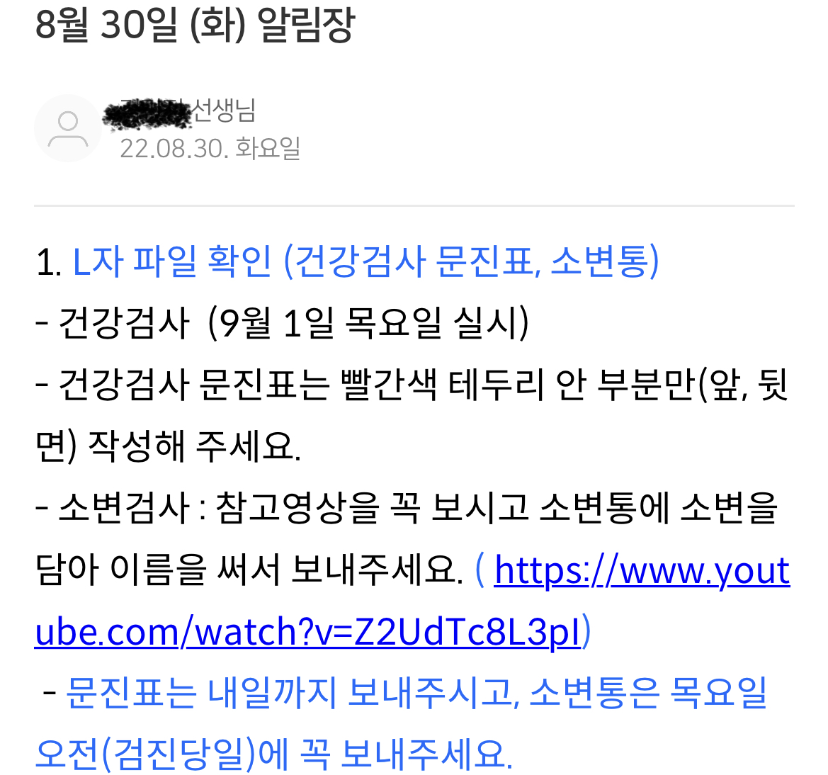 소변검사가 뭔 지도 모르는 1학년 아이가 학교 선생님의 지시로 오줌을 받아오라는 미션을 어떻게 받아들였을까?