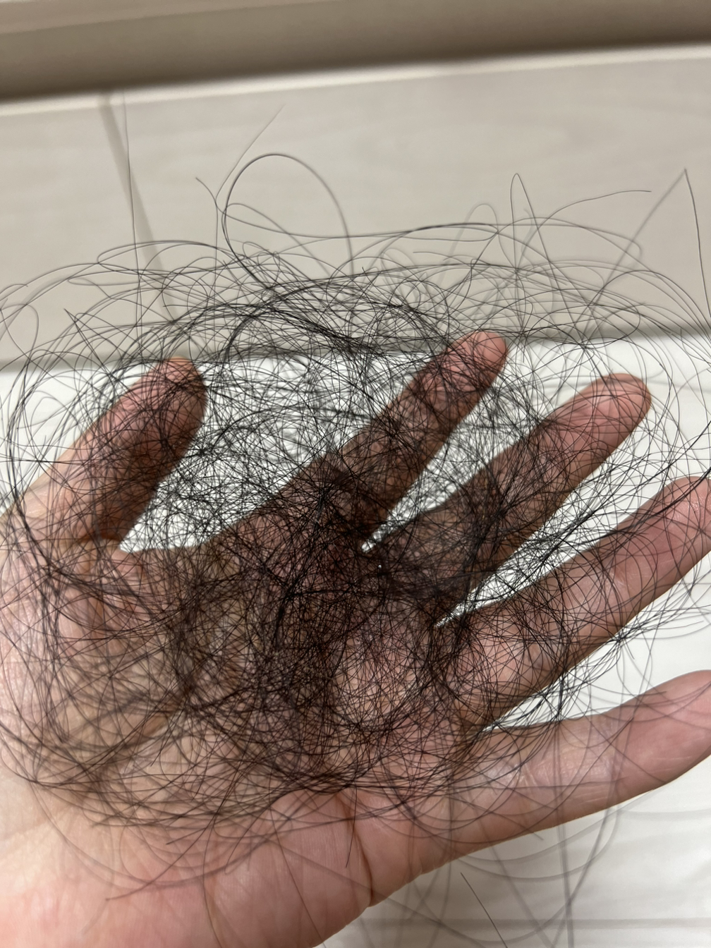 삭발을 하러 가기 전, 머리를 감고 말리는 과정에 평소보다 2배나 많은 머리카락이 보였다.