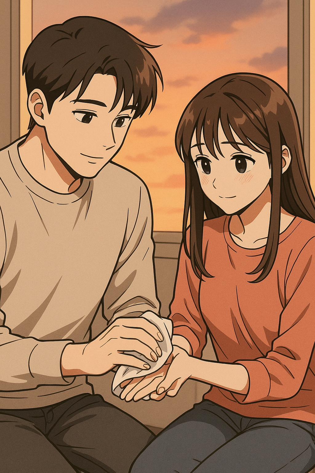 그 여자친구의 전남자친구의 여자친구가 그 남자친구의 손을 닦아주고.