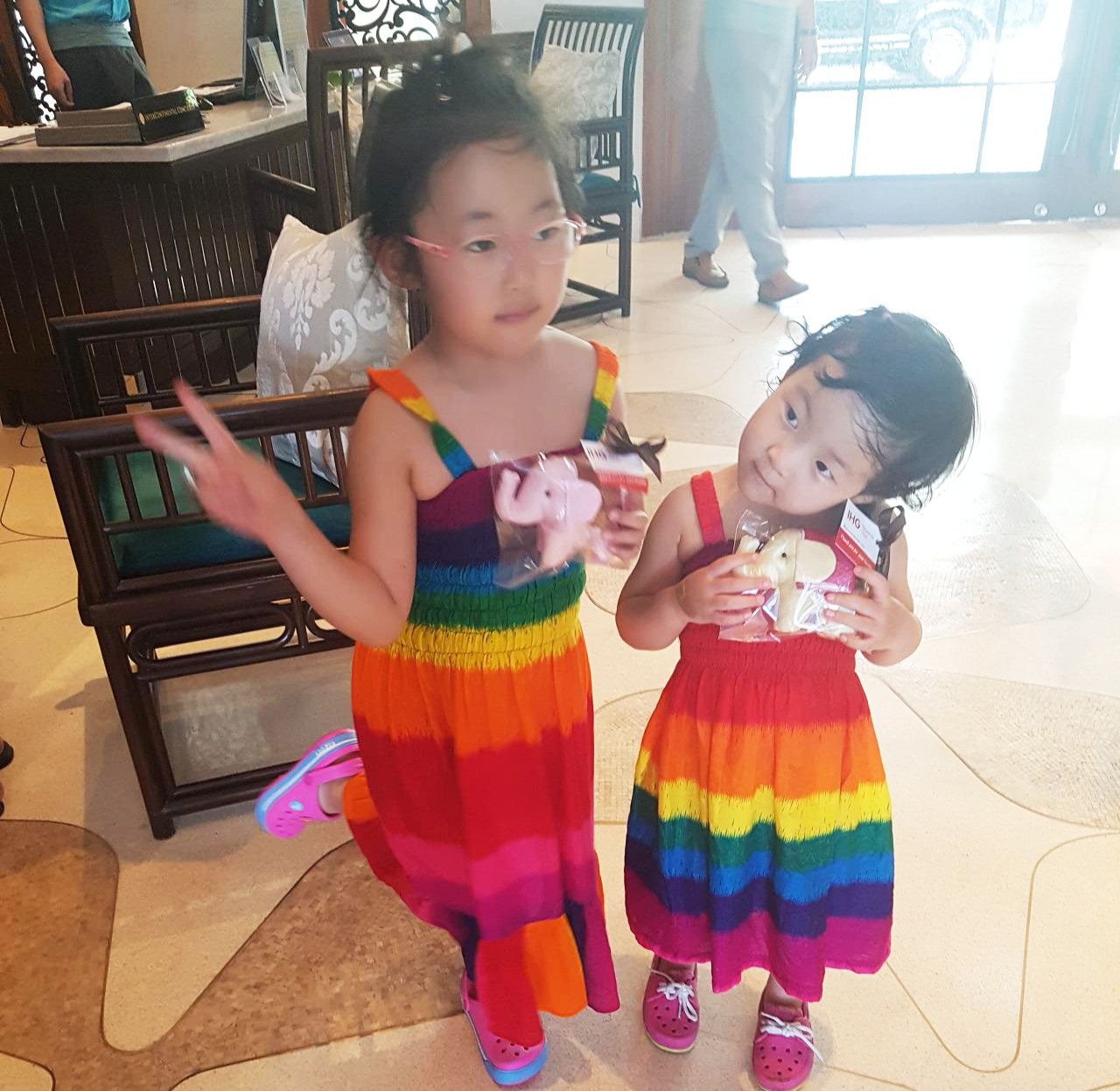 몸도 시원해지고, 기념품으로 코끼리 인형도 받은 딸 들은 다시 기분 업 UP!