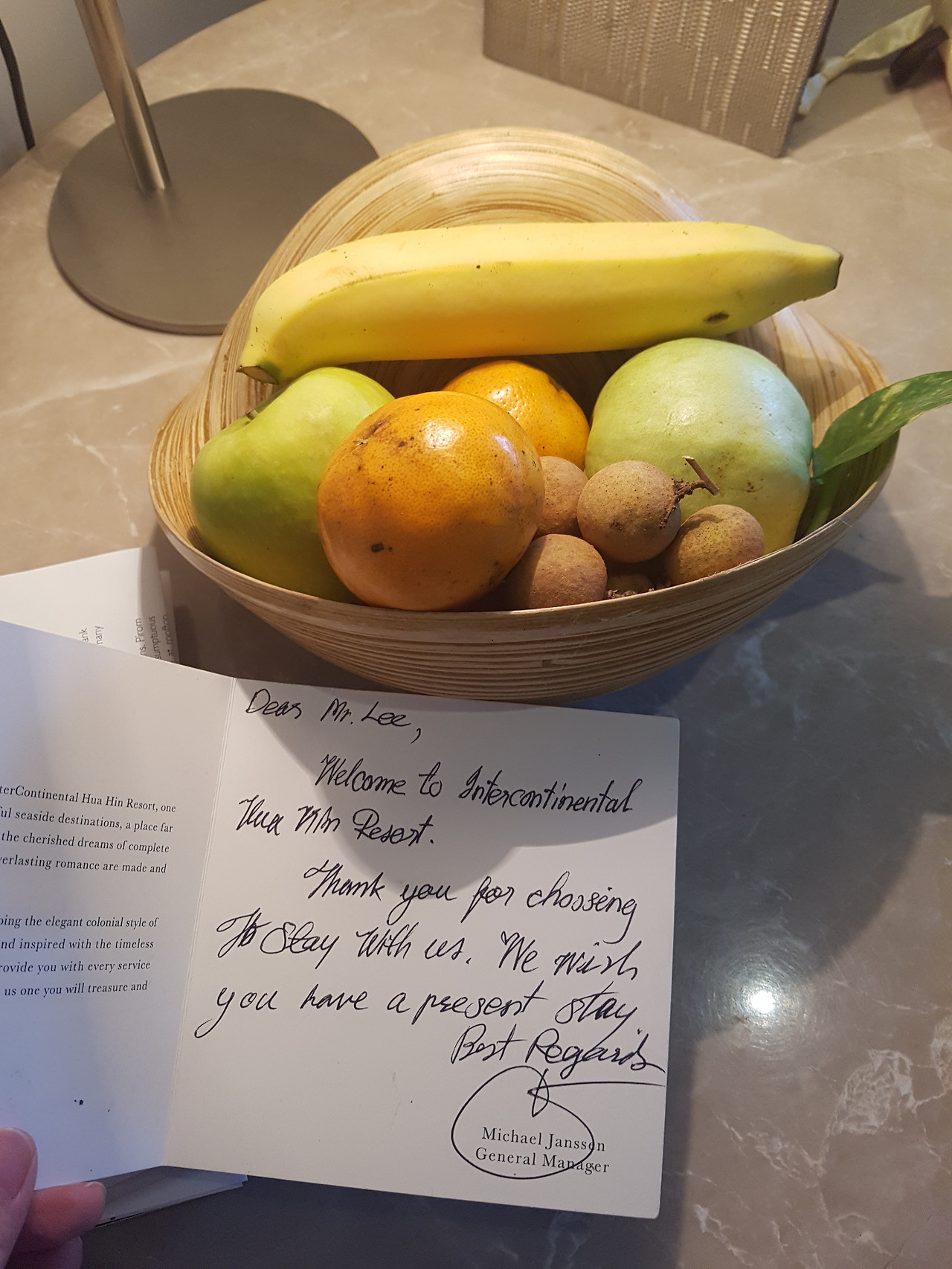 그리고 우리 가족을 환영한다는 메시지와 과일바구니 선물도 있어 감동을 안겨주었다.