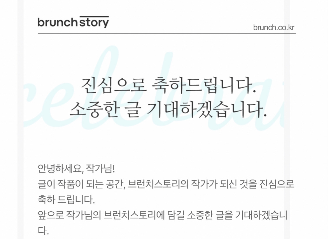 갑작스러운 심경의 변화 때문에 브런치를 신청했는데 감사하게도 이틀 만에 덜컥 합격이라는 이메일을 받으니 기분이 썩 좋아졌으며 작가라는 호칭이 꽤나 근사하게 느껴진다
