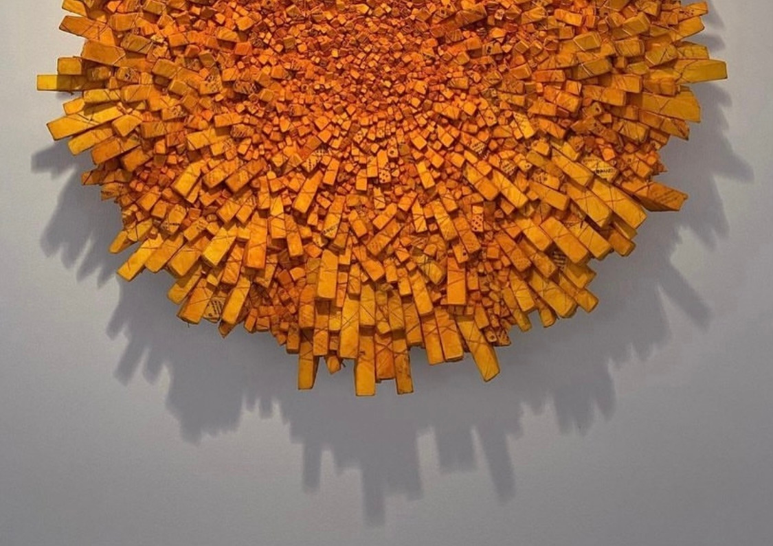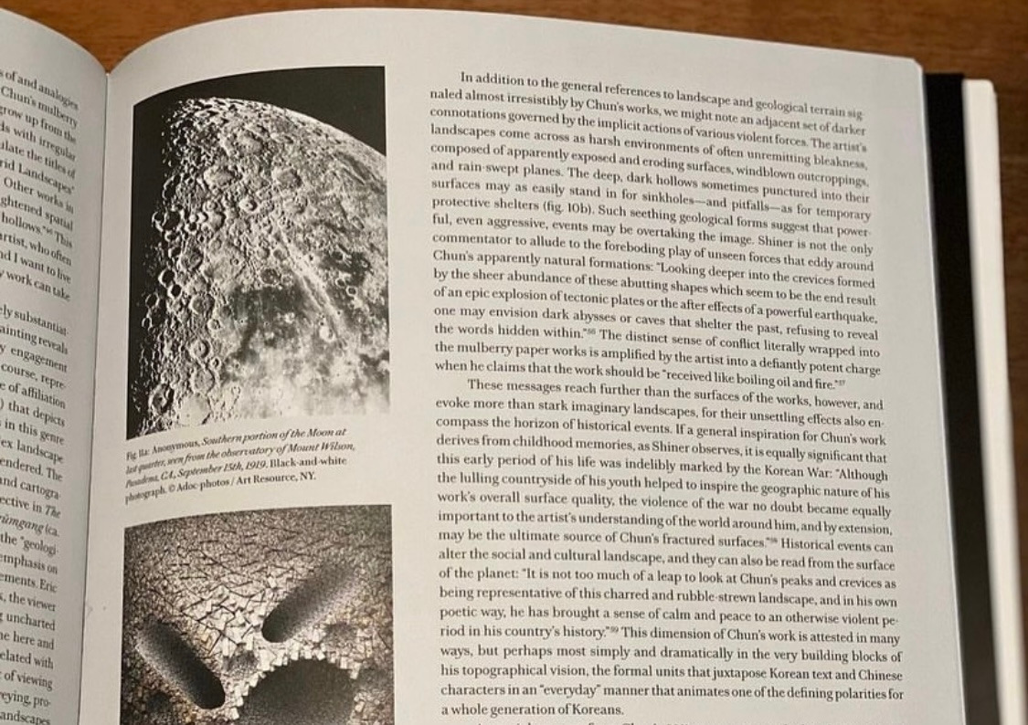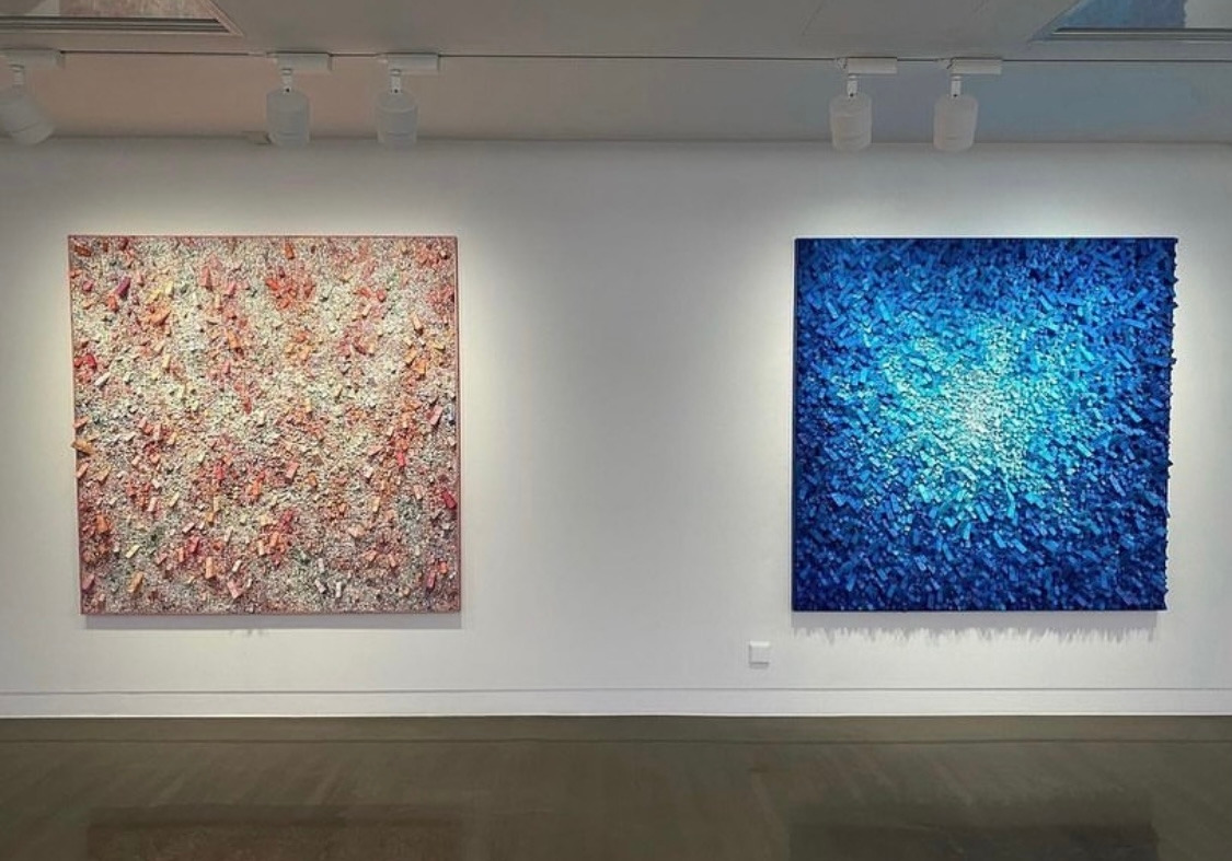 고서로 가득한 책장 안에서나 볼법한 한지를 천연 염색하여 더 고혹적으로 느껴지는 전광영 작가님의 작품들이다 아크릴에 둘러싸여 있는 작품들만 봐와서 그런지 역시 코앞에서 색감이나 텍스처를 감상하는 건 임팩트가 다르다는 걸 다시 한번 느꼈다 물론 케바케 개인의 취향이라 생각하지만 우리나라 컬렉터 분들이 전반적으로 아크릴이나 표구를 선호하는 걸로 알고 있다 물론 그림에 따라 표구를 해야 더 돋보이며 예쁜 그림이 있기도 하고 작품 보호를 위해 꼭 해야만 하는 작품이 있다는 것도 알고 있지만 전광영 김태호 박서보 같은 작가님들의 입체성을 강조한 작품들에 아크릴 액자를 입힌다는 건 확실히 나의 취향은 아닌 것 같다 (이건 분명한 개취임을 밝힘) 반사되는 빛 때문에 작품을 온전히 느끼기 어려운 느낌이 들어서일까 꼭 필요할 땐 무반사 유리를 맞추기도 한다