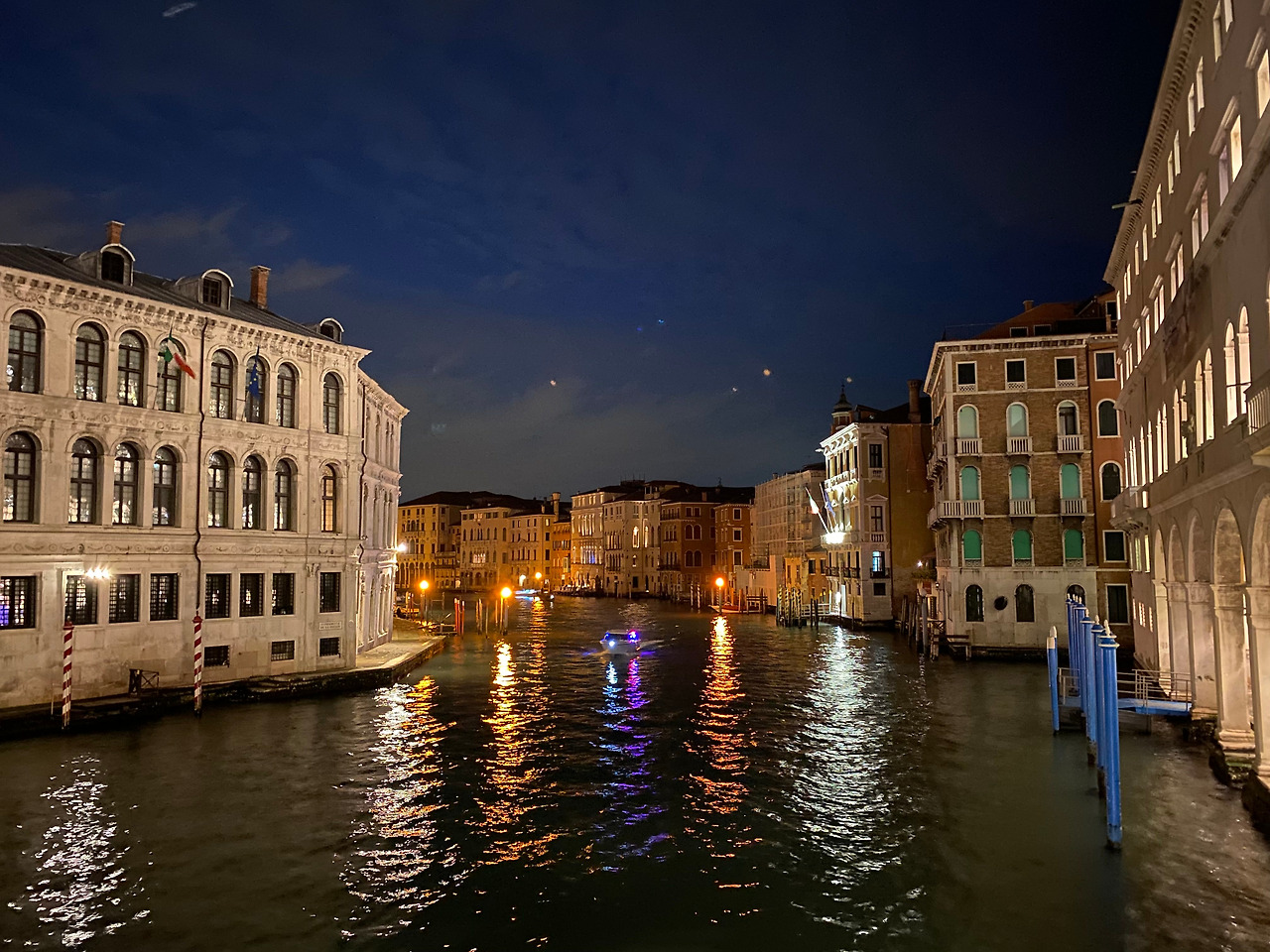 다리의 입구 계단에서 사진을 찍고 있는 수많은 인파들이 마치 이제 팬데믹은 종료되었다고 선언하는 것 같았다. 인파를 뚫고 다리 가장 높은 곳에 올라가 바라본 운하는 초저녁의 석양과 더불어 환상적인 풍경을 자랑하고 있었다. 운하를 채우고 있는 물길, 그 물길 위를 다니는 갖가지 크고 작은 배들, 운하 주변의 건물들과 양옆으로 늘어선 식당과 카페 등의 모습이 어우러져 우리가 흔히 알고 있는 베네치아의 상징적인 풍경을 그대로 만날 수 있었다.