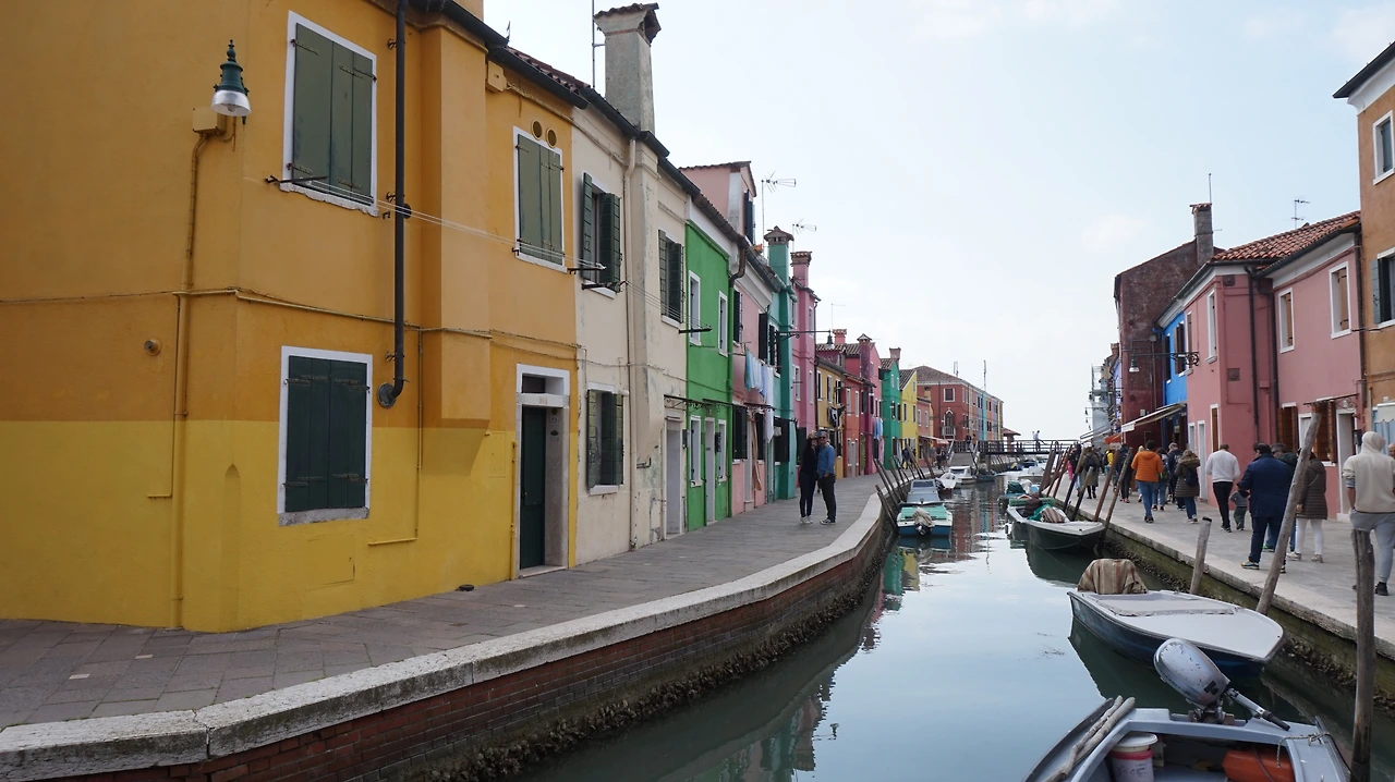 부라노섬이 한국인들에게 유명해진 건 가수 아이유가 2012년에 발표한 '하루 끝'의 뮤직비디오와 배틀트립 덕분이기도 하다. 인터넷에 아이유와 부라노를 검색창에 쳐보면 아예 아이유섬으로 소개하는 글이 있을 정도. 우리도 아이유의 뮤직비디오를 미리 보면서 기대감을 높였었는데, 부라노섬 선착장에 내리는 순간 눈에 들어오는 색색깔의 건물들을 보며 바로 감탄하지 않을 수 없었다. 전형적인 어촌마을인 이 섬의 집들이 알록달록한 색깔을 갖게 된 데에는 조업을 마친 어부들이 자신의 집을 찾아오기 위해서였다는 혹은 어선을 알록달록하게 칠하던 풍습에서 비롯되었다는 등의 유래가 전해져 온다. 지금은 지자체와 협의하여 자신의 집 색깔을 결정하고 칠하게 된다고 한다.