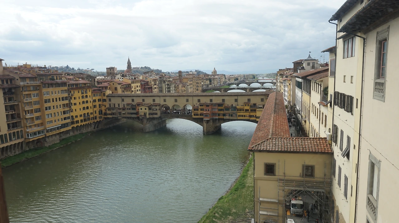 이번 투어의 설명 중 가장 인상적이었던 것은 메디치가문의 전용 비밀통로 역할을 했다고 하는 바사리 회랑이었다. 이 회랑은 우피치에서 시작해서 피티 궁전을 연결하는 1km가량의 고가 통로로 베키오 궁전에서 시작해서 우피치와 베키오 다리를 거쳐 피티 궁전까지 연결되는 통로라 하며, 가히 메디치가의 권세가 어떠했는지를 확실하게 드러내주는 공간이었다. 엄청난 특권과 지역과 예술에 대한 기여가 상존했던 메디치가의 스토리는 인류 역사가 가질 수밖에 없는 아이러니와 양면성을 다시 한번 상기시켜 주었다.
