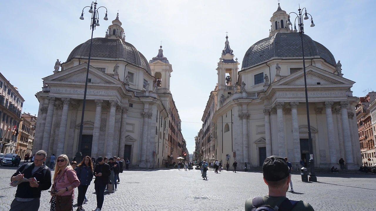 넓디넓은 광장의 한쪽에는 또 하나의 명소 쌍둥이 성당, 산타 마리아 데이 미라콜리 성당(Chiesa di Santa Maria dei Miracoli)과 산타 마리아 인 몬테산토 성당(Basilica di Santa Maria in Montesanto)이 보인다. 이 두 성당은 17세기 교황 알렉산데르 7세의 명에 의해 지어진 것으로 광장을 돋보이게 만들 수 있는 일종의 랜드마크로서 건축된 것이라고 한다. 언뜻 보면 완전히 똑같이 보이지만 자세히 들여다보면 조금씩 다른 디테일이 있어 마치 똑같이 닮았지만 미세하게 다른 쌍둥이들의 외모를 연상케 한다. 그렇게 포폴로 광장을 둘러본 이후 다시 테르미니역으로 향해 역 내부의 푸드코트에서 늦은 점심을 간단히 해결하고 숙소로 돌아갔다.